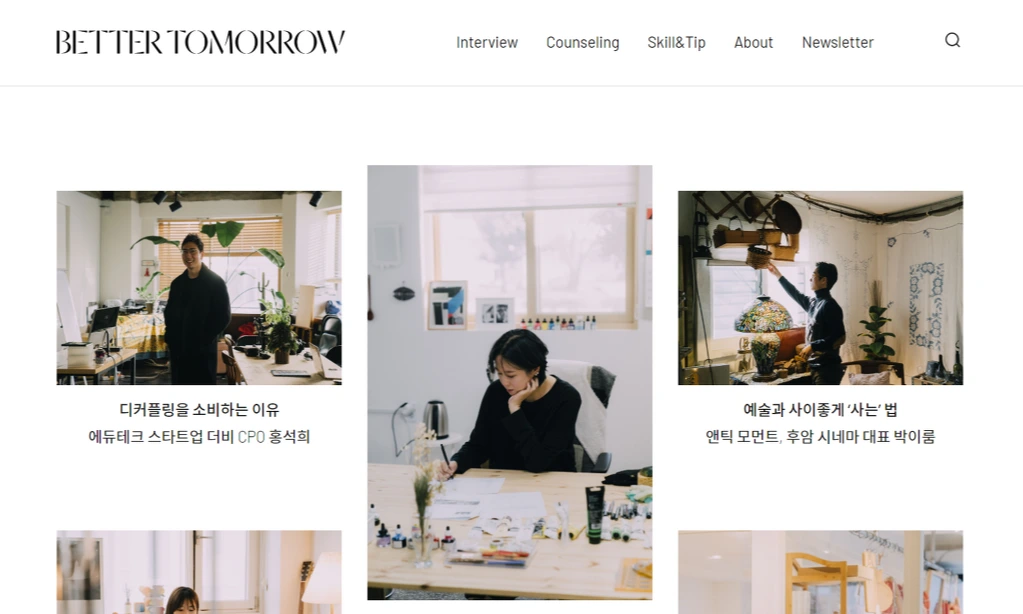 나는 이처럼 <Better Tomorrow>가 추구하는 차분하고 배려 깊은 호흡이 제법 마음에 든다. 일회성 방문에 그쳐버리게 되는 다수의 브랜드 채널들과 달리 매일 꾸준히 방문하고 싶어지는, 존재 가치가 선명한 채널이라는 생각이 든다. 다만, 이처럼 훌륭한 콘텐츠에 비해 아직 사람들에게 널리 알려지지 못한 점이 아쉽다. 그 아쉬운 마음과 응원하는 마음을 담아 이 글을 적어본다. 더 많은 이들의 '작지만 위대한 삶의 가치'를 계속해서 조명해주시길.