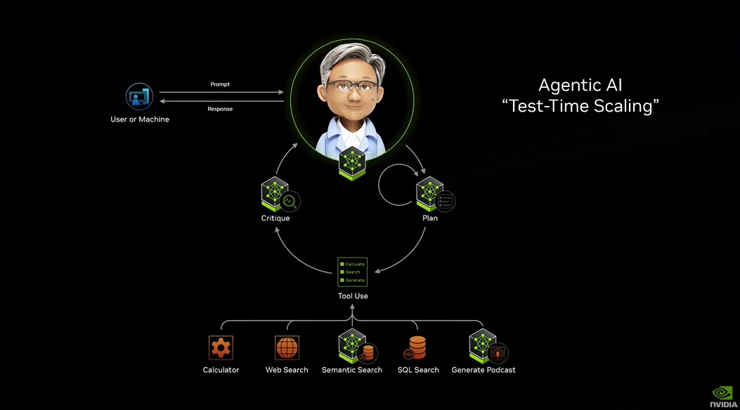 내가 보는 관점에서의 NVIDIA는 AI분야에서 AT&T와 같은 역할을 할 것처럼 보이기 때문이다. 많은 이들이 황씨 아저씨의 키노트를 보면서, AI에이전트니, GPU로 떼돈을 버는 빅테크 회사를 생각 하겠지만, 실제로 엔비디아가 원하는건 인간이 생활하는 모든 분야에서 AI가 적용되도록 하는 "AI의 인프라"화로 보인다. 여전히 장벽이 되는 GPT모델의 기계 선행 학습(Pre-Training) 파트는 엔비디아(및 그의 파트너 회사들)가 맡고, 노트북과 휴대폰, 자동차같은 단말기에서는 파인튜닝이 가능한 AI에이전트를 깔아주고, 이를 연결해주는 다양한 파이프 라인을 제안하고 있다. 이는 단순히 칩셋만 만들어서, 혹은 ChatGPT처럼 생성형AI의 기계 선행 학습등으로 돈을 벌겠다는 목표를 넘어선다. 그보다는 AI가 어디서도 적용가능한 AI인프라를 전세계에 깔아보겠다는 원대한 목표가 보인다.
