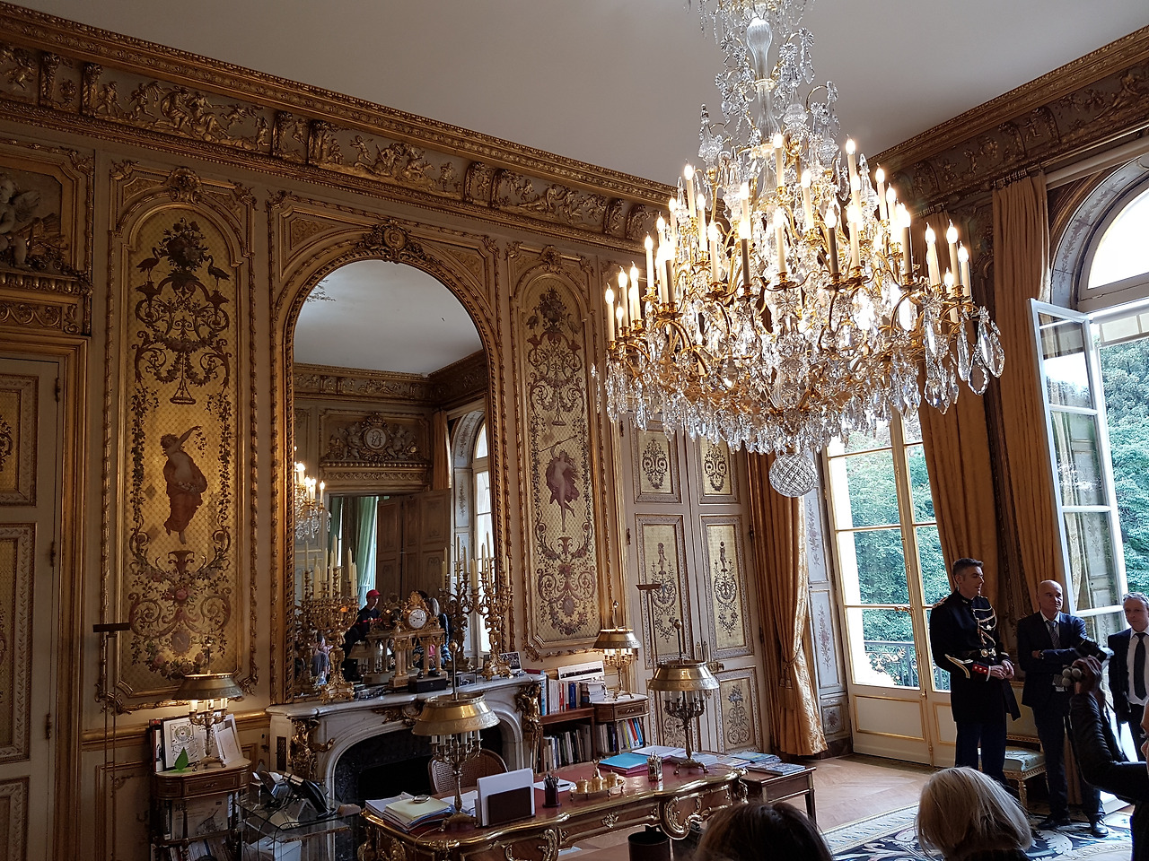 화려한 살롱 도레. 나도 이런 데서 일하고 싶다. 그때는 올랑드 방이었는데 마크롱 방. 또 마크롱 방...
