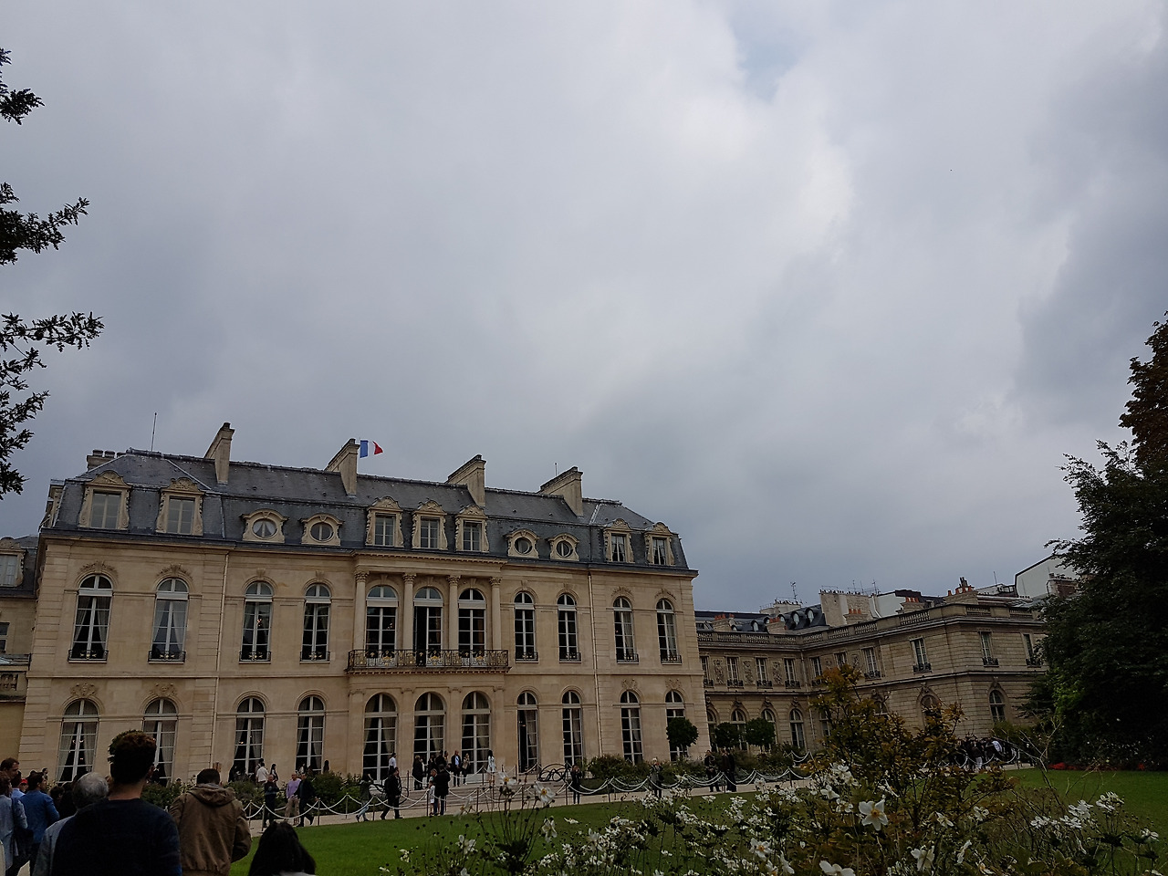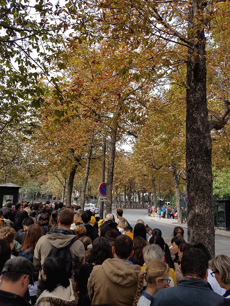 모두 다 특별한 곳이었지만, 그중에서도 가장 기억에 남는 곳은 '엘리제 궁'이다. 엘리제 궁은 항상 매년 1순위로 뽑는 곳이었지만 사실 엄두도 내지 못하고 있었다. 이미 방문해 올랑드 대통령의 사진도 찍은 친구는 엘리제 궁 방문의 위험성을 미리 경고했었다. 또 새벽부터 줄을 서도 못 들어간다는 등 이런저런 카더라도 나를 위협했지만 그럼에도 불구하고 한 번쯤은 방문해야 할 것 같아 도전하였다. 황금 같은 주말 아침, 일어날 수 있는 최대한의 이른 시간에 일어나 엘리제 궁 앞에 도착했다. 아침 8시였는데, 이미 줄은 엘리제 궁을 넘어 샹젤리제를 지나 콩코르드까지 쭉 뻗어나가고 있었다. 나름 최대한 일찍 도착한 것이었는데, 역시 대통령 궁은 유럽 문화유산의 날 최고의 인기를 자랑했다. 도착한 지 얼마 되지 않아 더 이상 줄을 받지 않았고 조금만 늦게 들어왔으면 아예 들어가지도 못할 뻔했다. 학창 시절 놀이공원에서 2~3시간 줄을 선 이후로 오랜만에 줄 서기를 했었던 것 같다. 1시간, 2시간, 3시간.. 줄도 안 줄어들고 엘리제 궁도 안 보였다. 앞뒤로 꽉 막혀 있어 화장실은 물론이고 중간에 포기하고 나갈 수도 없는 지경이었다. 4시간, 5시간.. 드디어 엘리제 궁이 보이기 시작했다. 정문을 들어가 보안대를 통과했지만 그 안에도 줄이 늘어서 있었다. 줄을 서기 시작한 지 장장 6시간이 지나서야 드디어 엘리제 궁에 입성하였다.