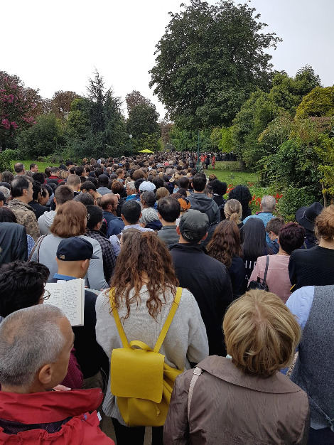 샹젤리제에 서 있는 인파. 이래서는 중도 포기할 수도 없는 상황. 마스크 안 쓰고 저렇게 모여있는 사진 너무 낯설다.