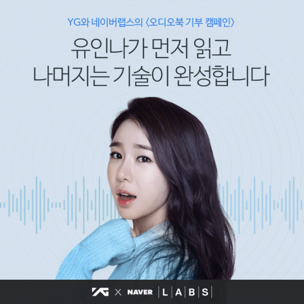 매우 운이 좋게도 YG와 유인나 님이 승낙을 해주었다. 해피빈과 함께하는 오디오북 기부 캠페인이라는 타이틀 아래 캠페인을 만들 수 있었다. 유인나 님은 생각보다 긴 시간 녹음에 동참했고, 결과적으로 네이버랩스는 기술력을 뽐낼 수 있는 오디오북 3권이 완성시켜 세상에 내놓았다.