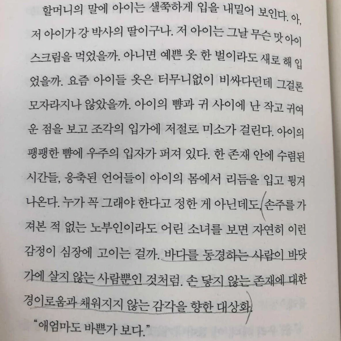 주영 : 그리고 공유하고 싶은 문장은 <파과>에서 한 문장.. 구병모 작가를 알게된지 얼마 안됐는데, 어려운 단어와 긴 문장으로 이미지를 잘 표현하시는 분이에요. 죄다 만연체. 진짜 모르는 단어만 골라쓰는 언니.. 그런데 그게 또 맛.