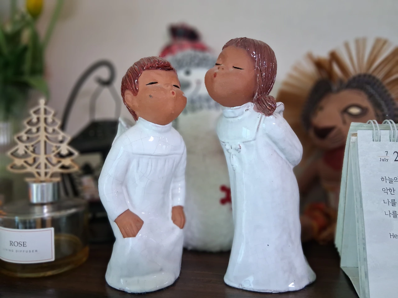 남편과 나는 여러 물건 중에서 접시 네 개와 컵 두 개를 선택했다. 그리고 돌아가신 어머니가 스페인에서 구입하셨다는 천사 커플 장식품도 함께 가져왔다.