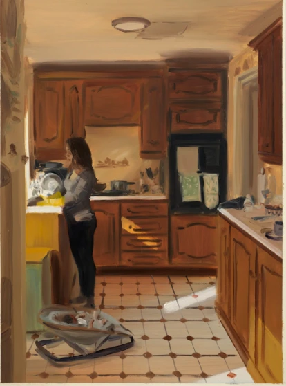 그러한 배경은 작가는 어릴 적 가장 익숙했던 풍경은 부엌이었으며 부엌에서 작업을 하기 시작했다고 한다. 이후 작가는 부엌을 너머 더 다양한 곳에서 일을 하는 여성을 그리고 있다.