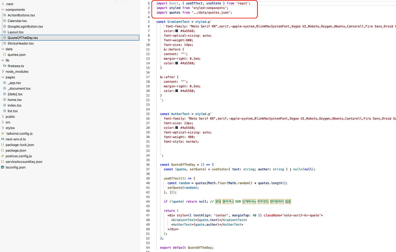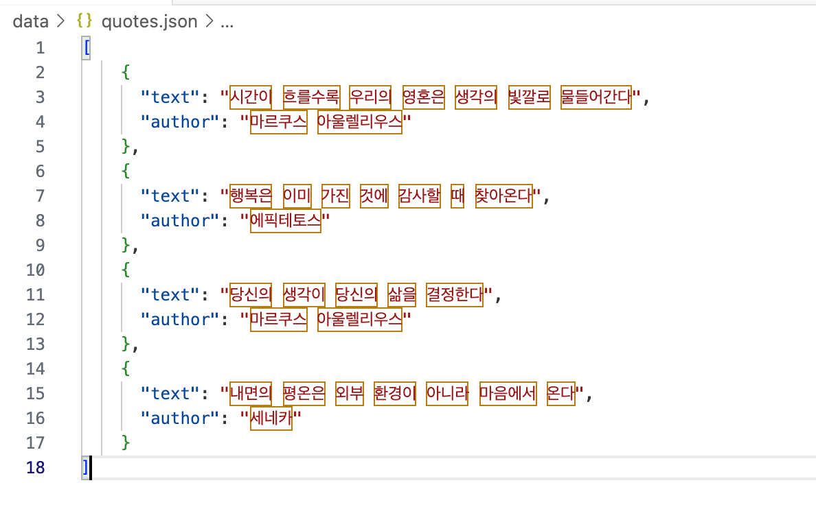 따옴표와 저자의 이름을 사이즈 구분도 해야 하고, 텍스트 폰트도 좀 더 가독성 있게 적용할 예정입니다.