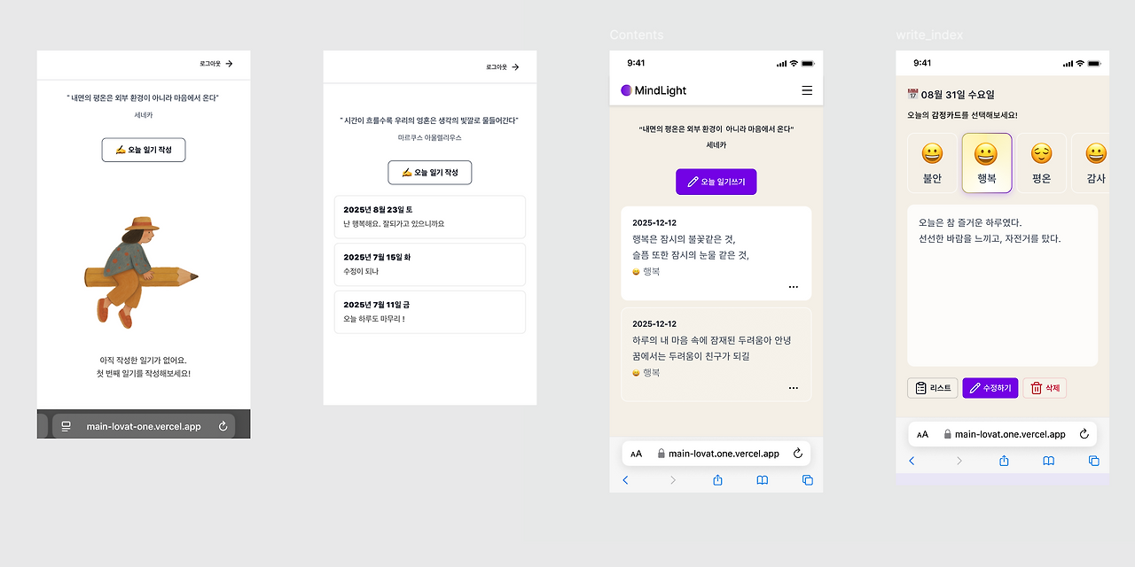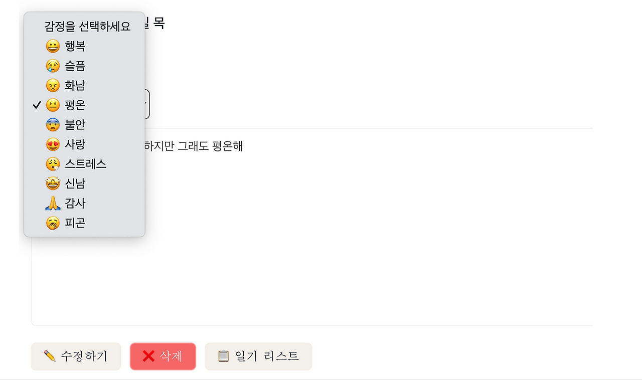 디자인이 전체적으로 감정을 선택하는데 감성적이지 못한 UI로 생각되어서 이 부분을 많이 변경하고자 했습니다.