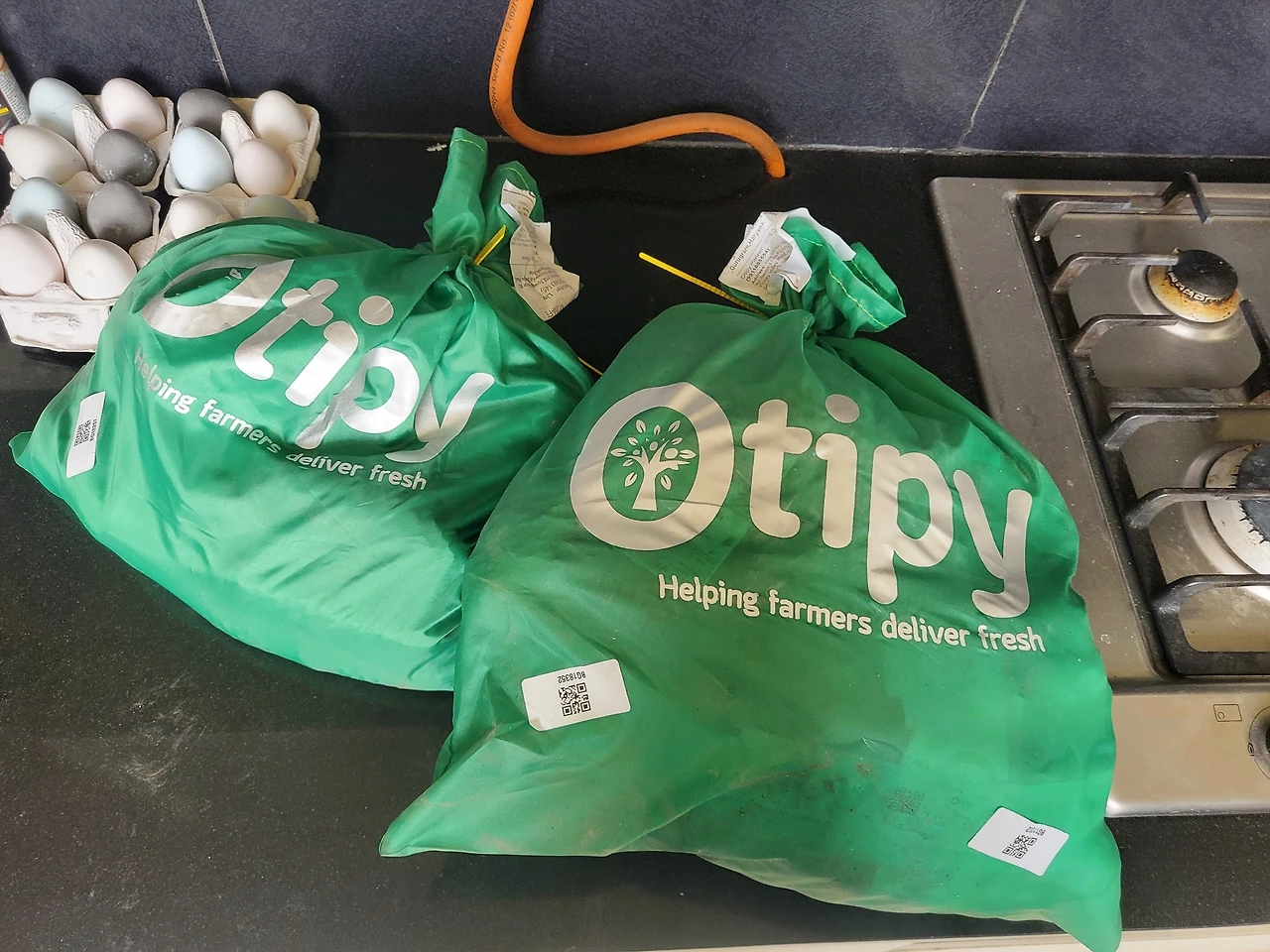 시간 약속 어기기를 예사로 아는 인도에서 단 한 번도 아침 7시를 넘기지 않고 칼같이 배달해주는 오티피를 어찌 사랑하지 않을 수 있을까. 내 맘대로 되는 것 하나 없는 나라에서 내 맘에 쏙 들게 예쁜 짓만 하는 요물이다. 전날 배송 주문을 넣으면 다음날 아침 눈 뜨자마자 현관으로 달려간다. 과연 오늘도 잘 도착했을까 설레는 마음으로 문을 열면 그 앞에 살포시 놓인 초록 비닐백이 나 좀 데려가 달라고 기다리고 있다. 흡족한 미소를 띠며 양손 가득 집어 들고 주방으로 들어간다.
