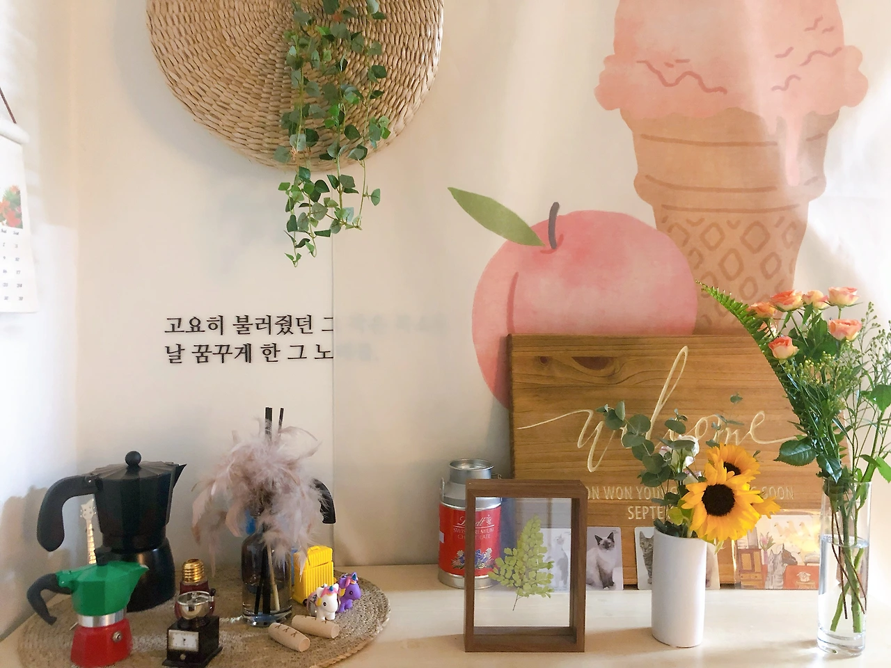어릴 때부터 나만의 공간을 가지고 내가 좋아하는 스타일로 꾸며보는게 내 작은 소망이었는데, 지금은 이렇게 내 공간을 작게나마 꾸미고 바꿔나가는게 소소한 재미거리가 되었다.