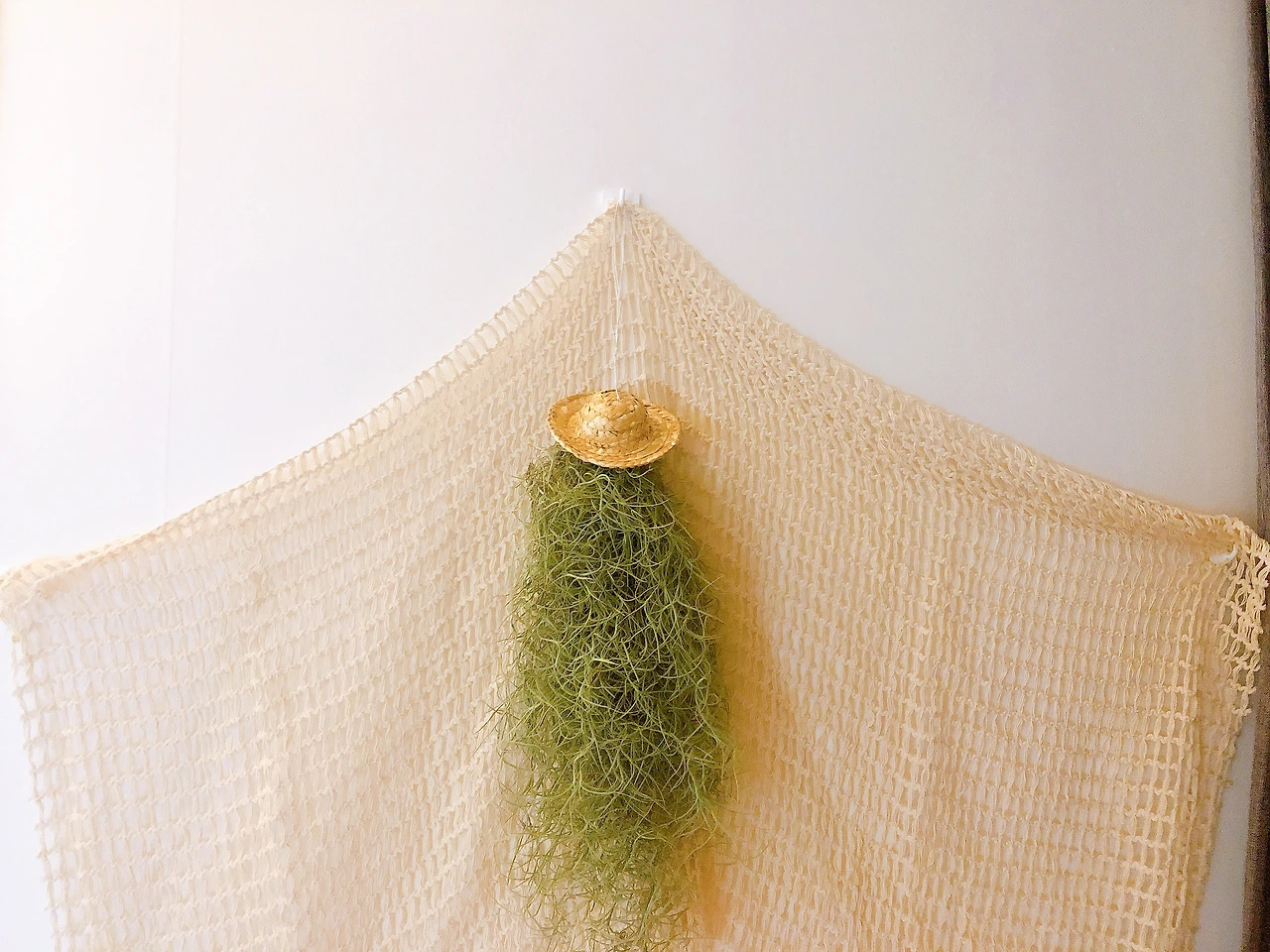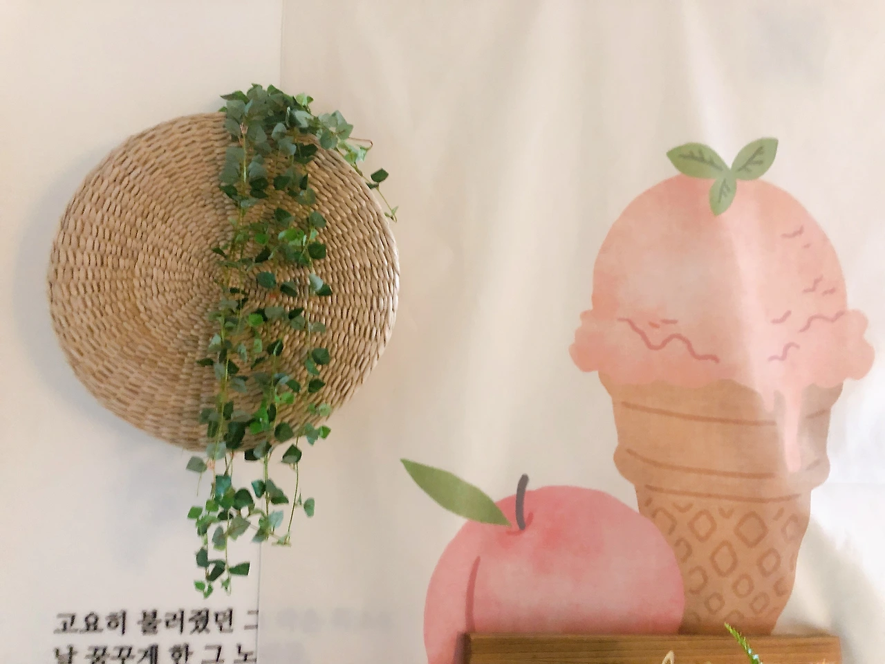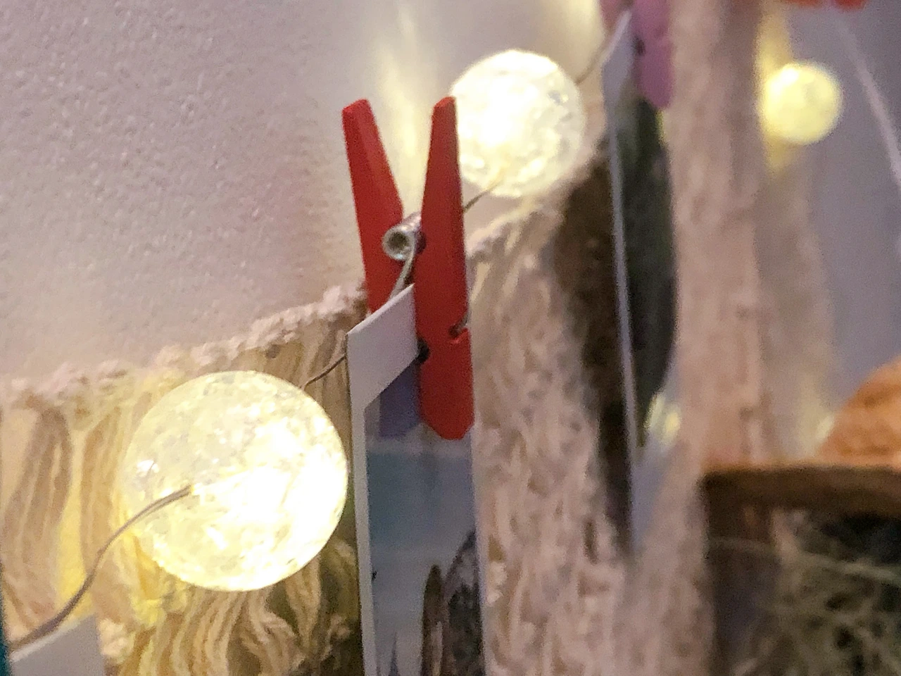 린넨 천을 벽에 걸어두고 수염 틸란드시아를 가운데에 걸어두었다. 이정도로 깔끔하게 끝내긴 해야하는데, 미니멀리즘이 불가능한 공간이라.. 전구와 폴라로이드사진, 뜨개질복숭아 2개까지 약간 과한 공간 완성.