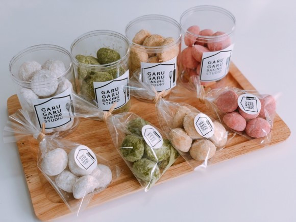 동그랗게 반죽해서 굽고 가루를 입히면 스노우볼이 완성된다.
