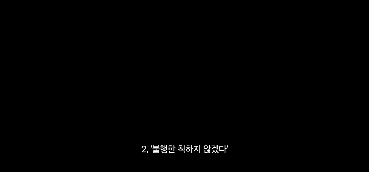 이 표현을 처음 들었을 때 충격을 받았다. 사실 나는 '~척하다'라는 표현에는 주로 잘난 것들이 붙는다고 생각했다. 예를 들면 '잘난 척' '멋진 척' '아는 척'처럼 그냥 들어도 익숙한 조합. 이런 어구들에는 항상 뻔뻔한 표정의 어떤 사람이 으스대는 말을 하면서 우쭐하고 있는, 혹은 누군가를 무시하고 있는 그런 장면이 떠오른다. 그런데 불행한 척이라니. 표현이 너무 생소하지 않은가. 사람의 내면에 무의식적으로 타인의 불행을 비꼬거나 모욕하지 않으려는 심리가 있거나, 우울이나 불행 같은 건 심각하게 다뤄주자는 암묵적인 사회적 합의가 있었던지도 모르겠다. 그런데 이 드라마에서 불행한 척이라는 단어가 꽤나 담담하고 담백하게 등장하는 걸 보고 느꼈다. 어쩌면 사람들은 자신의 불행이 너무 거대하고 크다고 느끼는 바람에, '불행한 나'라는 프레임에서 벗어나지 못하는 걸 수도 있겠다는 생각이 들었다. 스스로의 불행을 손에 쥔 채 놓아주지 않고, 불행하다는 자극적인 표현 방식에 중독되어 타인 앞에서도 기꺼이 '불행한 사람'이 되는 것을 주저하지 않고 선택하는 것이다.