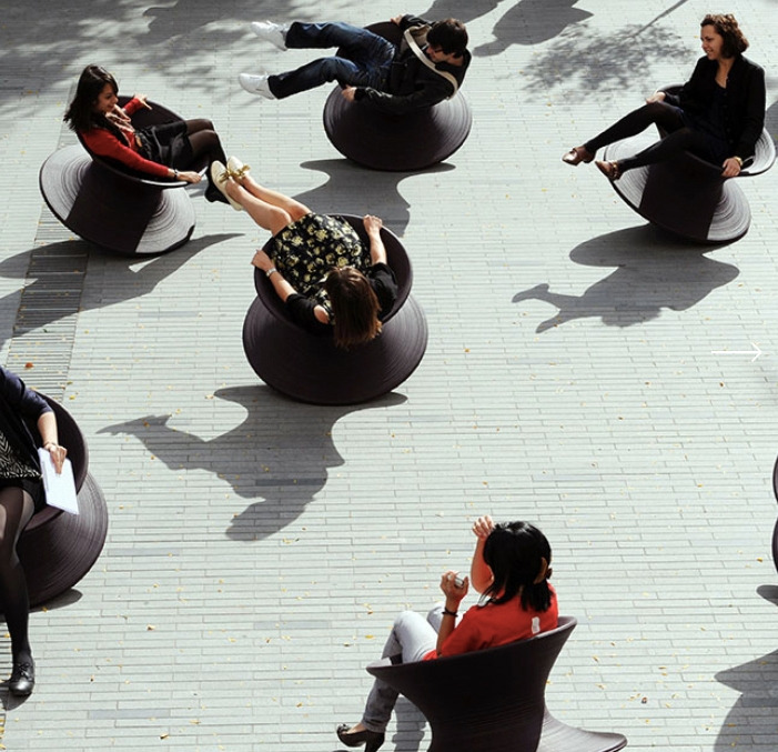 화면 앞에 뒹굴고 있는 팽이 같이 생긴 것들은 건축가 토마스 헤더윅의 회전하는 의자입니다. 사실 애국가와 회전하는 의자의 조합이 맞나 잠깐 의심했습니다. 어린 시절이었던 80년대에 애국가가 울리면 길 가다가도 서서 국기에 대한 경례를 해야 한다고 배웠기 때문입니다. 애국가가 연주되는데 뱅글뱅글 돌아가는 의자에 앉아 있다고 해서 애국심이 변하는 건 아닌데 말이죠. 인종차별을 얘기하는데 의자를 굴리고 앉아 있다고 해서 그 주제를 경시하는 건 아닌데 말이죠.