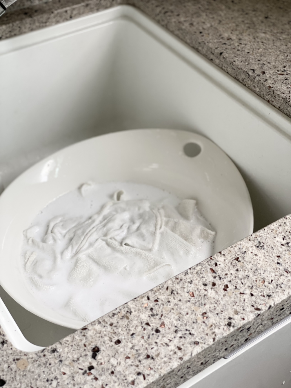 과탄산 소다는 가루를 녹여 담가 두는 정도만으로도 충분히 살균, 표백효과를 볼 수 있다.