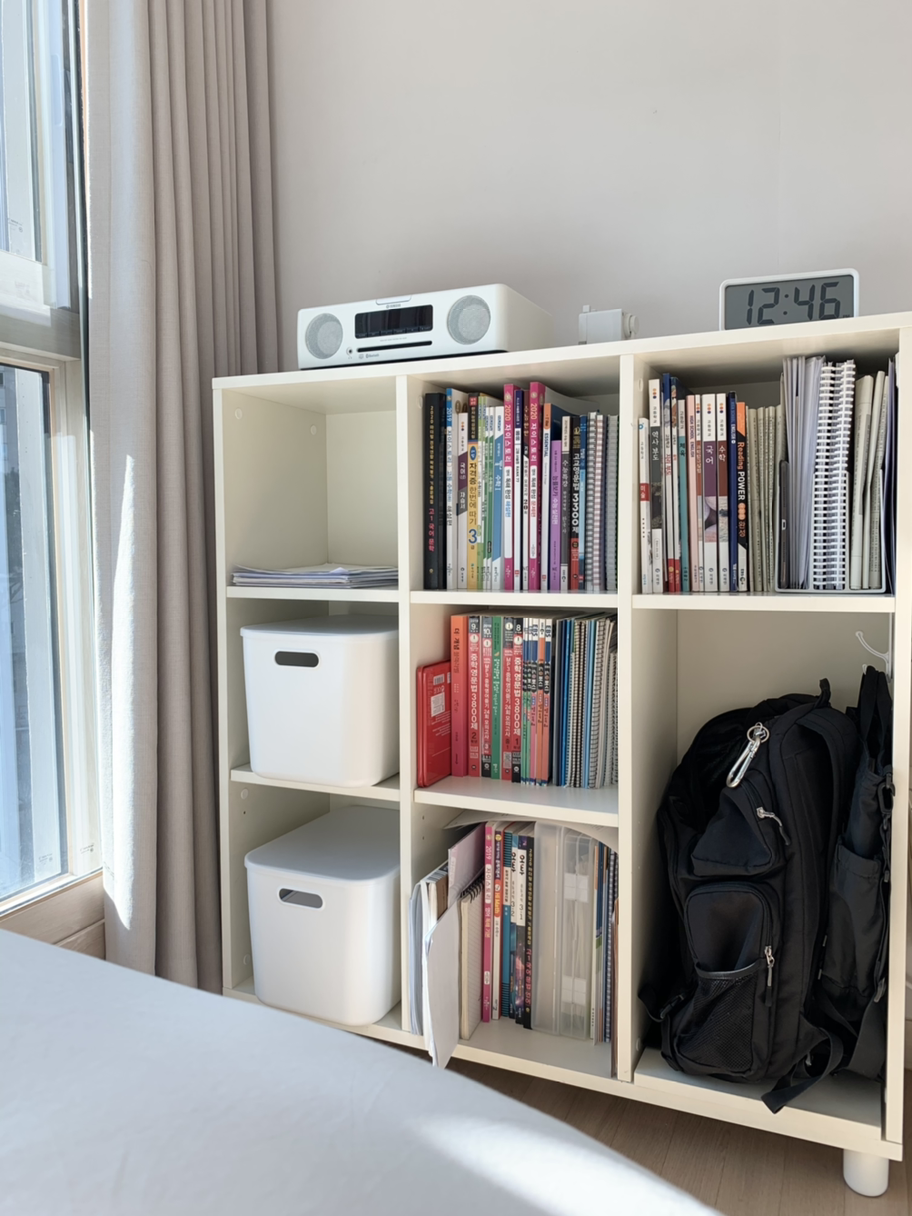 아이가 아끼는 기타를 가장 멋지게 수납할 질 좋은 나무 스탠드를 놓아주고, 잠잘 때 틀어두어도 거슬리지 않게 소리 없는 선풍기를 찾아냈다. 물건을 찾느라 시간을 허비하지 않도록 불필요한 물건을 치우자 아이의 집중력도 올라갔다.