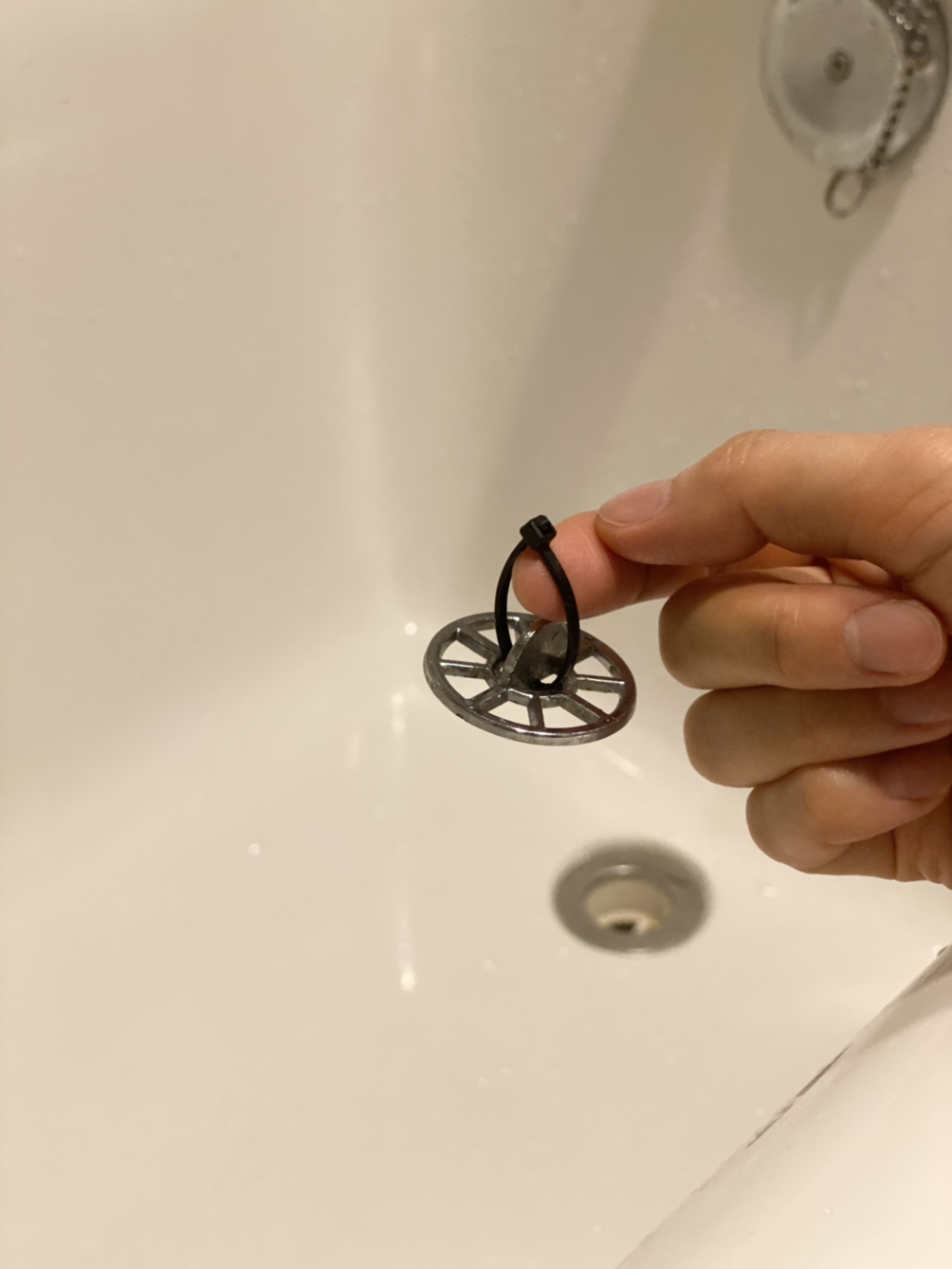 케이블 타이 하나면 배수구를 쉽게 들어 올릴 수 있다.