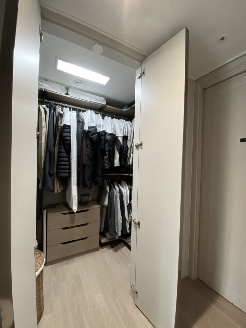부피가 큰 아이들 외투는 각자의 옷장이 아닌 안방 드레스룸에 걸려있다. 외투가 필요한 계절이 오면 자기 옷을 가져가 각자의 옷장에 걸기만 하면 된다.
