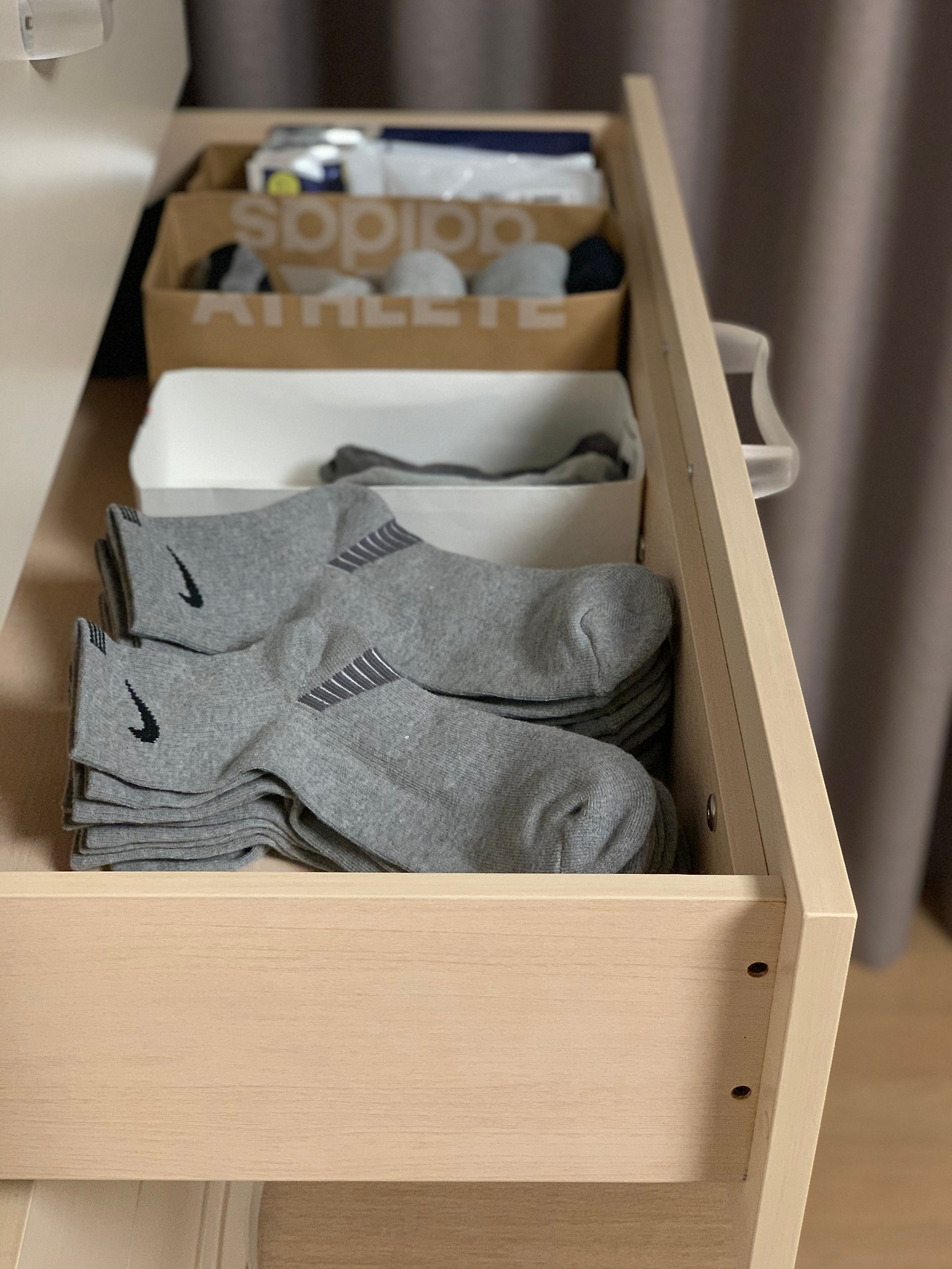낡고 구멍 난 양말을 비워가며 되도록 같은 종류의 양말을 구입해 종류를 늘리지 않았다.