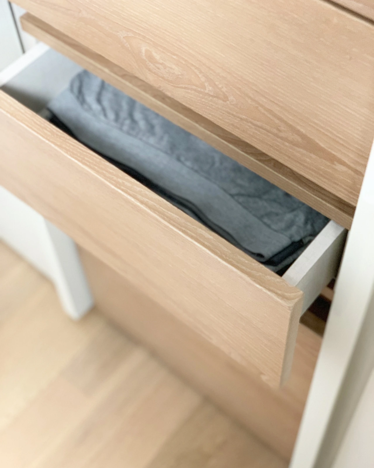 수건은 욕실 밖 서랍에 따로 보관하고 개인 수건의 자리를 만들어 주었다.