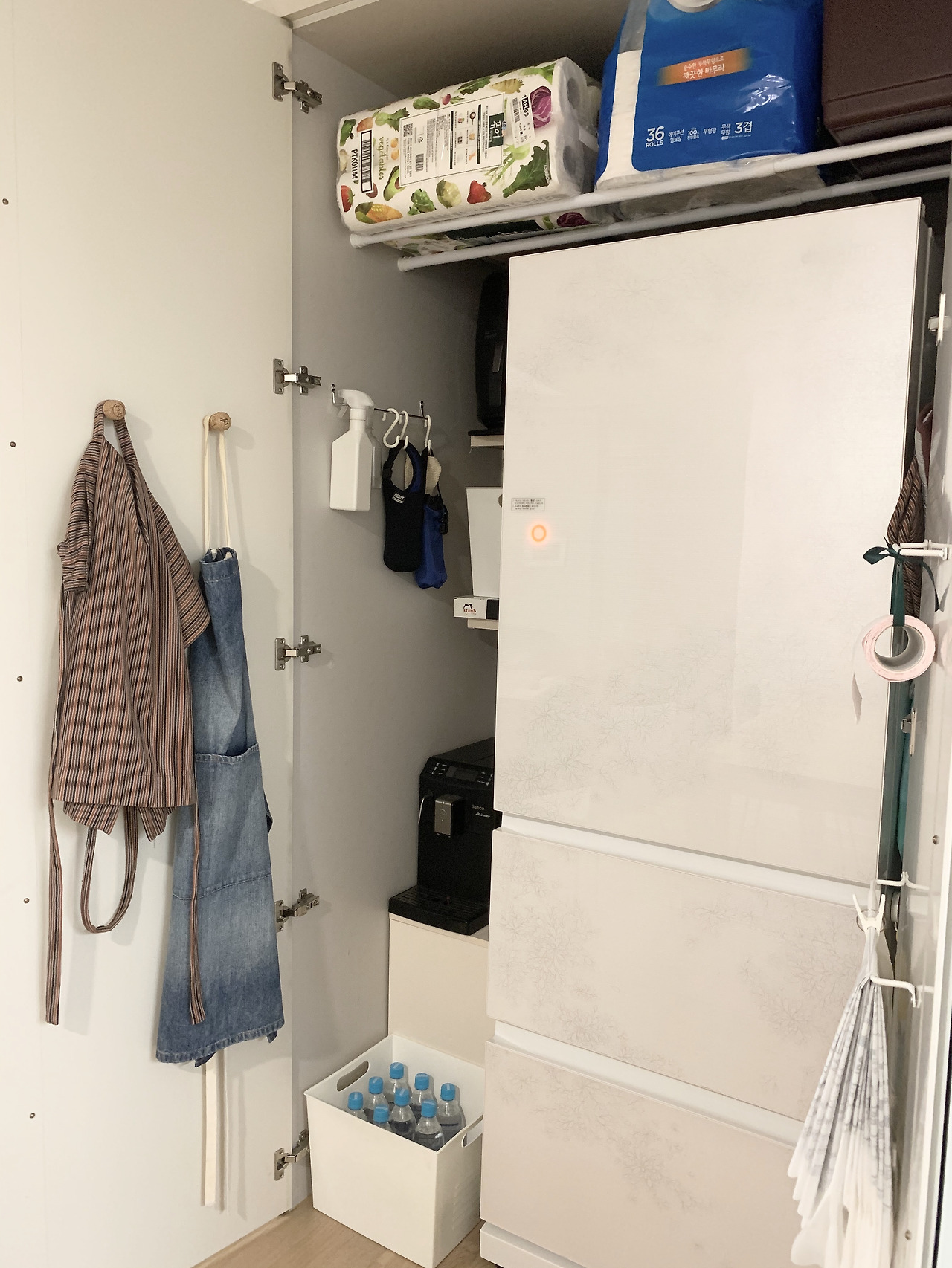 이곳에 덩치 큰 조리도구와 여분의 생필품까지 모두 수납하는데 닫아두면 감쪽같다.