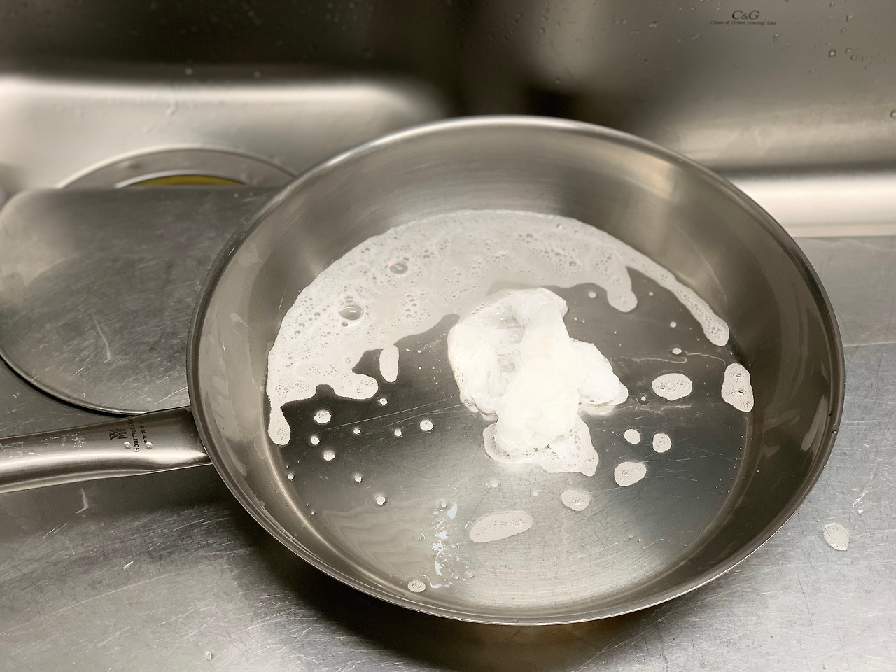 랩은 생각보다 거품이 잘 생기고 흠집 걱정이 없어 코팅팬을 세척하기에도 좋다.