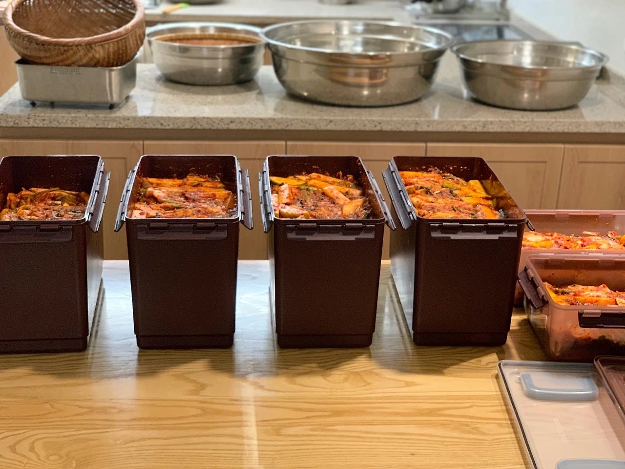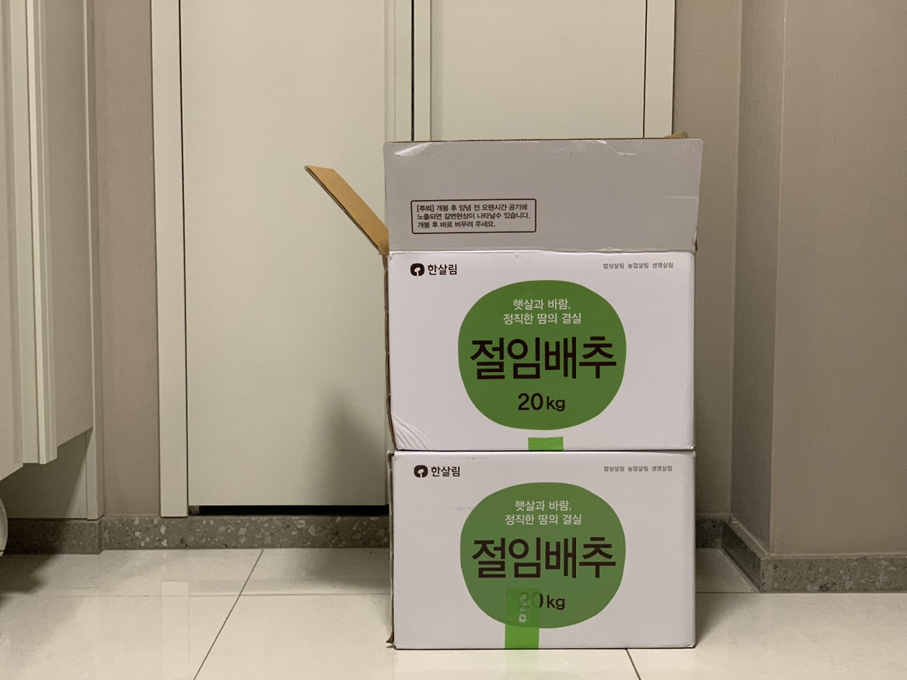 4인 가족 기준으로 1 절임배추 10kg 4 박스면 (혹은 20kg 2박스) 큰 김치통에 4통이 나온다. 우리 집 김치냉장고 맞는 양을 주문하면 좋다.