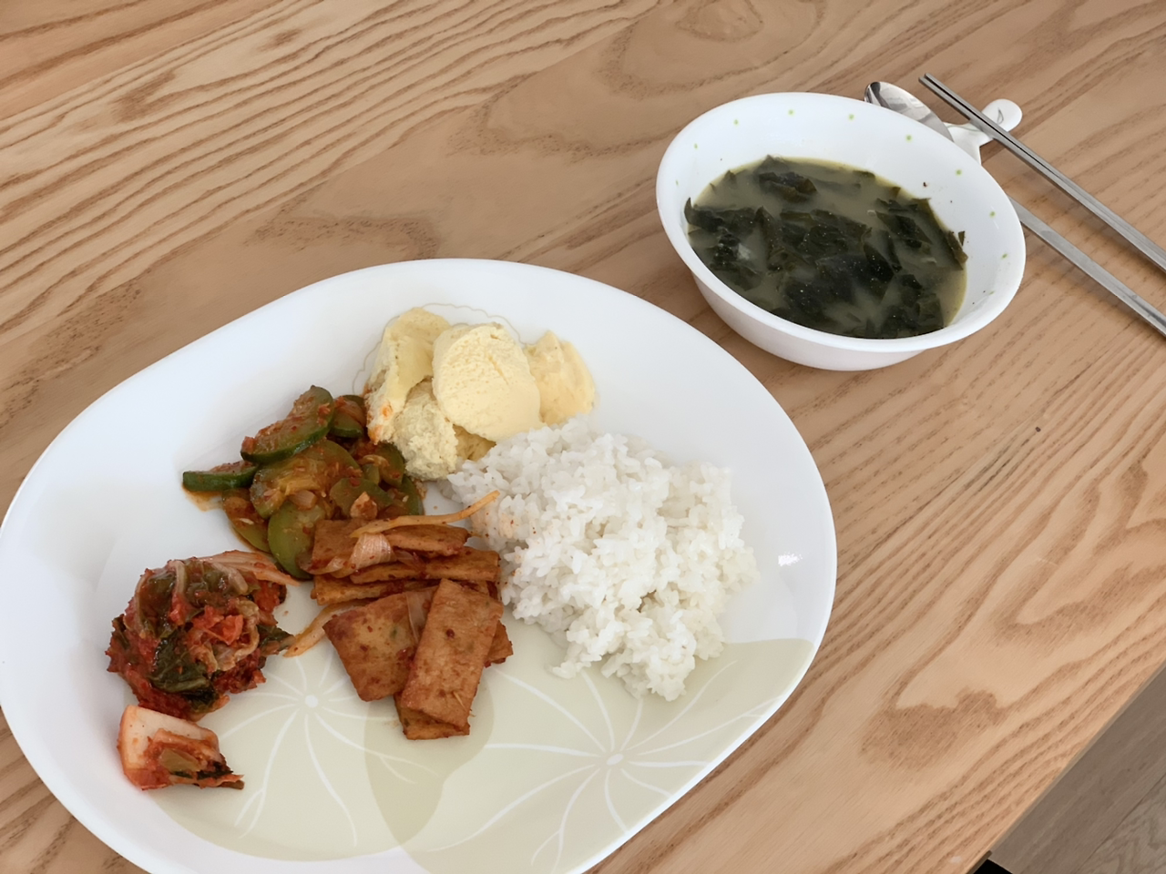 사용한 식기는 각자가 먹은 접시 4개와 국그릇 4개가 전부이다. 국이 없는 날은 접시 4개가 다이다.