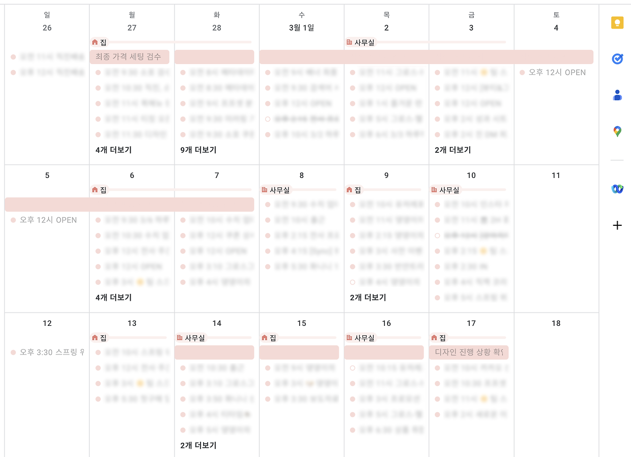 사무실에서 일하면 확실히 업무 방해 요소들이 적어서 집중하기에는 좋다. 팀 사람들이랑 지금 겪고 있는 고충이나 시도해 볼 부분들을 같이 이야기하면서 동질감과 유대감을 느낀다. 그래서 최대한 화요일, 목요일 주 2일은 캘린더에 출근으로 표기하고 사무실에서 만나는 편이다.