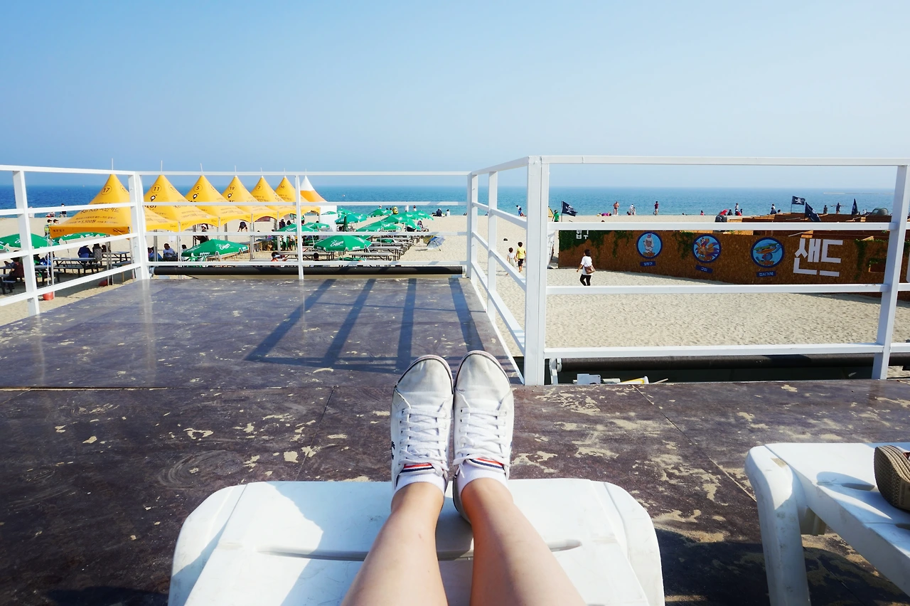 대신, 모래축제를 맞아 설치된 북카페 위층 옥상에 있던 선베드에 누워 여유를 만끽했다.