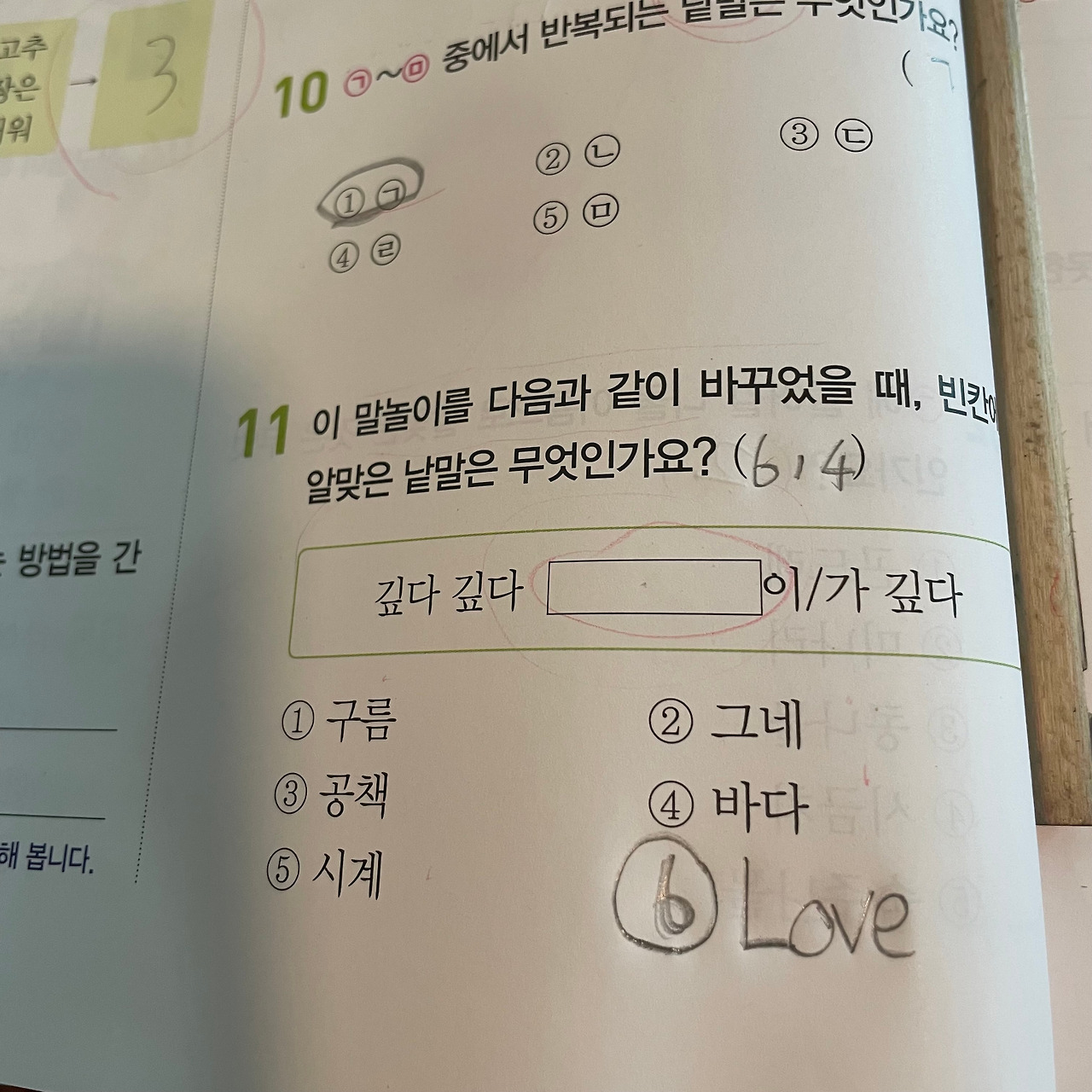 아이들의 초등학교 국어는 내가 직접 봐주겠다는 마음을 먹고 보니 앞으로 십 년을 더 해야 한다는 계산이 나왔다. 십 년이라는 시간을 헤아린 어느 날 저녁, 내 마음이 십 년 앞서 늙었다. 국어책을 보는 것도, 아이를 가르치는 일도 내가 더 좋아해서 시작한 일이지만 어렵지 않고 순탄하기만 한 시간도 아니기에 십 년이라는 시간이 짧게 느껴지지 않았다. 특히 아이의 학습 문제는 언제나 어렵다. 지금 이렇게 시작해도 좋은 것인지, 아이도 원하는 것인지, 아이가 원하지 않아도 해야 할 시점이라고 엄마인 내가 판단하면 해야 하는 것인지 정답이 없는 질문들 앞에서 나는 방황하기 일쑤였고 급기야 내 머리가 먼저 아프기 때문이다.
