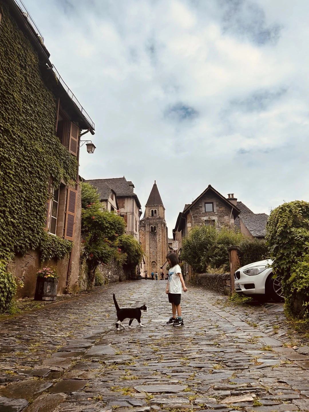 교회 앞 크레프 식당에서 잠봉(햄), 에멍탈 치즈, 계란이 든 크레프를 점심으로 먹고, 교회를 둘러보고, 중세 시대를 상상하며 동네를 걸어 다녔다. 비가 보슬보슬 내리고 운무가 산 중턱에 걸려 있는 전경이 그림보다 더 아름다웠다.