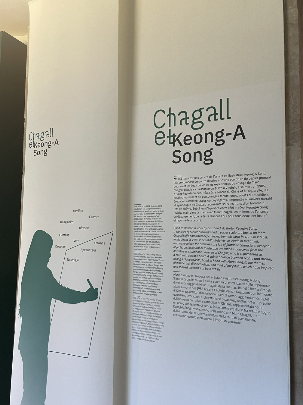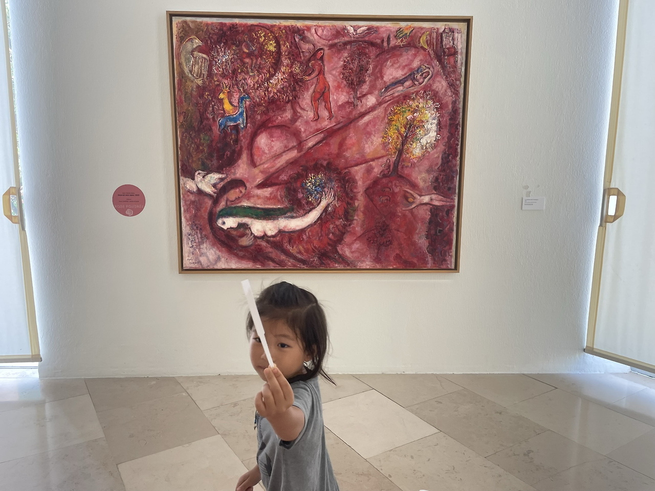 첫 번째 기획전은 일러스트레이터 송경아 작가가 샤갈의 작품에서 모티브를 얻어 작업한 일러스트였다. 한국 작가를 샤갈 박물관에서 만나서 기뻤고, 작가의 그림도 인상적이어서 관람이 더없이 즐거웠다. 아이들에게 한국 작가가 해석한 샤갈의 작품이라고 소개할 때 나도 모르게 뿌듯하기도 했다. (해외에 살다 보니 가끔 맥락 없이 애국자가 되곤 한다.)