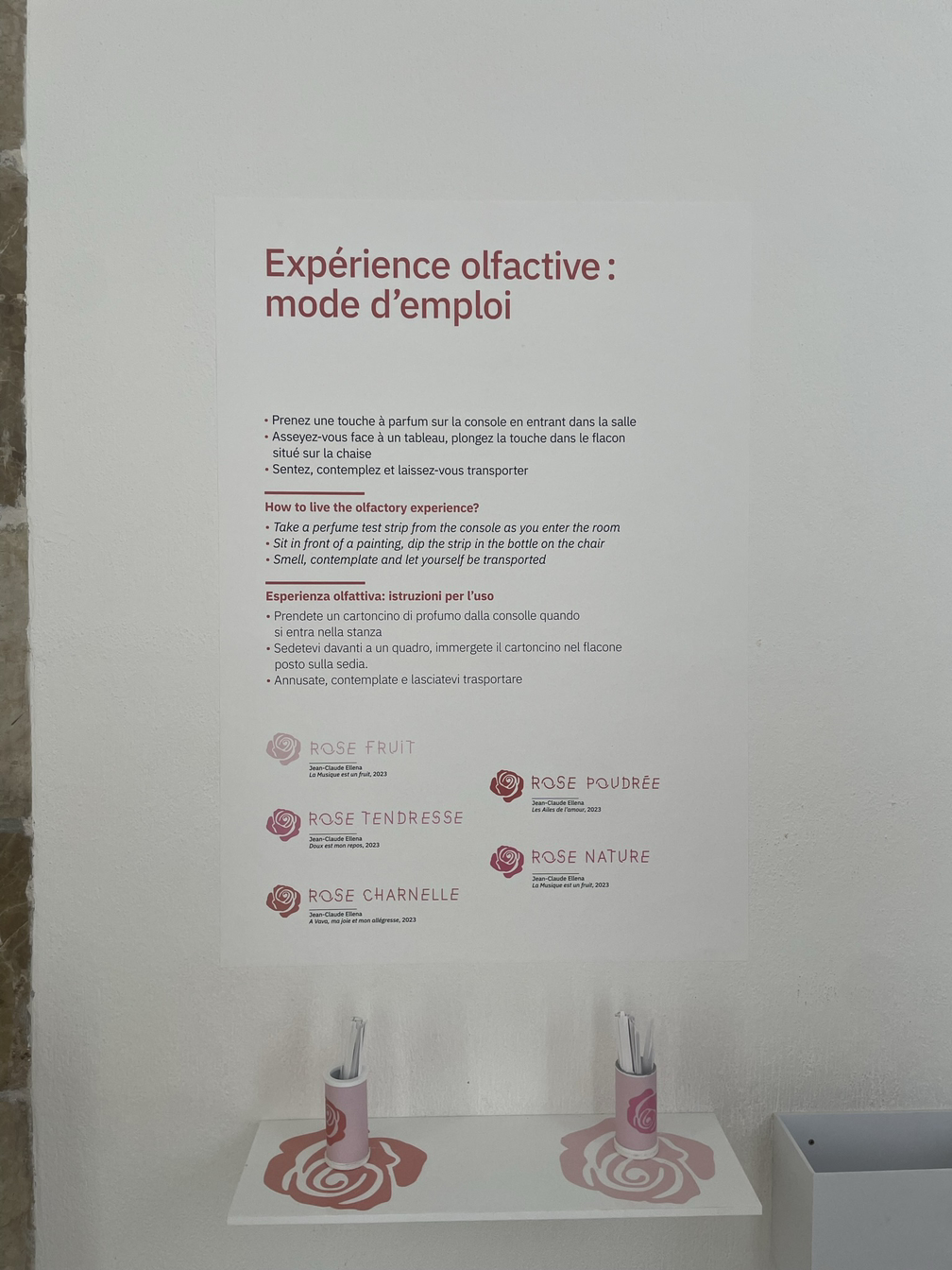 두번째 기획전은 조향 전문가 장 클로드 엘레나(Jean-Claude Ellena)가 샤갈의 작품을 모티브로 향을 만들어 그림과 함께 향을 감상하는 컨셉이었다. 사랑이 주제인 붉은 계열의 작품과 장미 향이 절묘하게 어울렸고 오감이 깨어나는 느낌이었다.