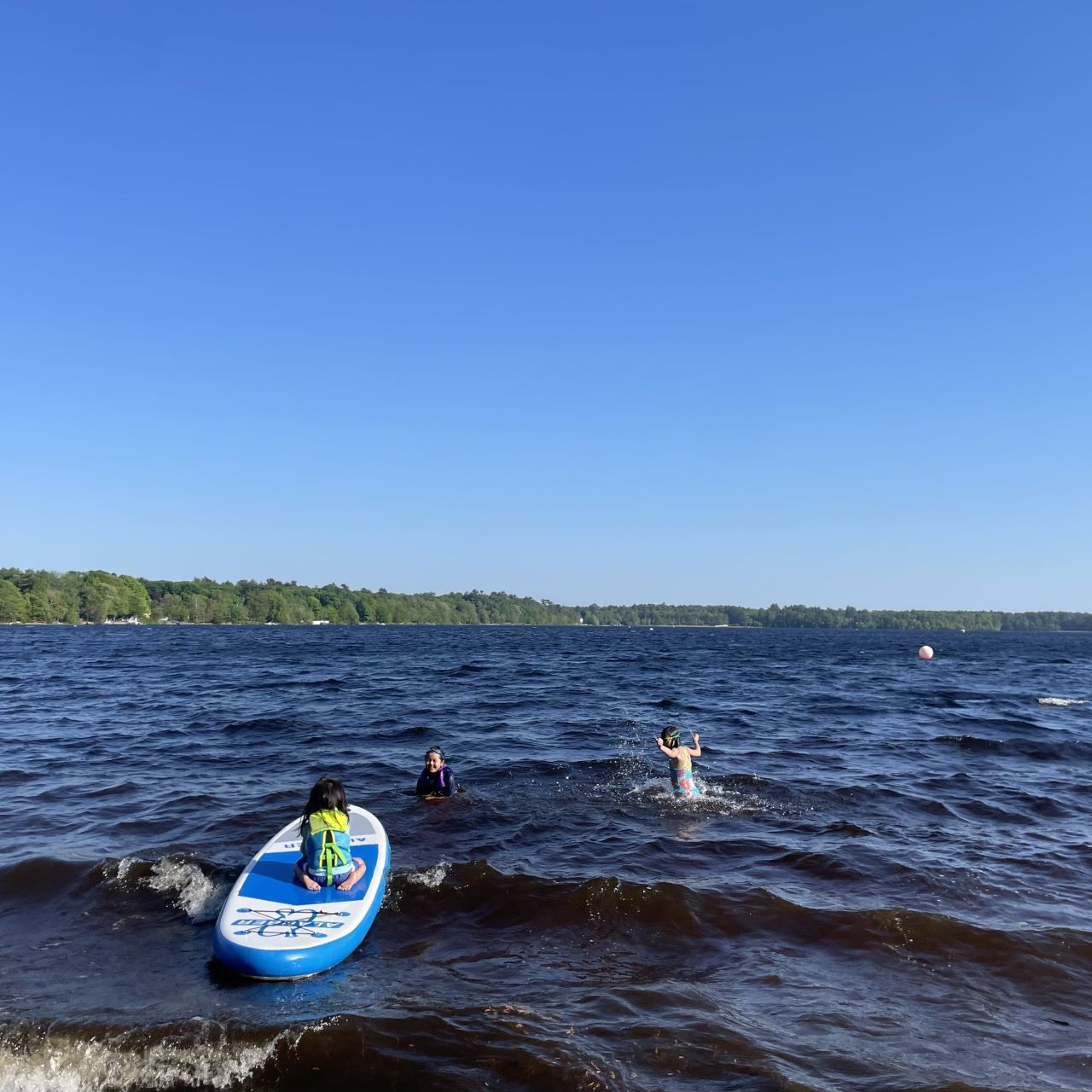 집 앞에 있는 호수는 그야말로 자연이 선사한 놀이터다. 바닷가에서 해수욕은 해봤지만, 호수에서 수영을 해본 건 태어나 처음인 나와 아이들에게 호수는 도전 그 자체였다. 30도가 웃도는 날에는 학교에 다녀온 아이들을 데리고 곧장 호숫가로 향한다. 미리 쪄놓은 옥수수를 호숫가에서 맛나게 먹고, 정신 없이 물놀이하다보면 바람이 살짝 서늘해지고 똑똑한 배꼽시계가 신호를 보낸다. 5분도 채 안 되어 집에 돌아와 야무지게 저녁밥을 먹고 나면 아이들은 너나 할 것 없이 서둘러 꿈나라로 떠난다.
