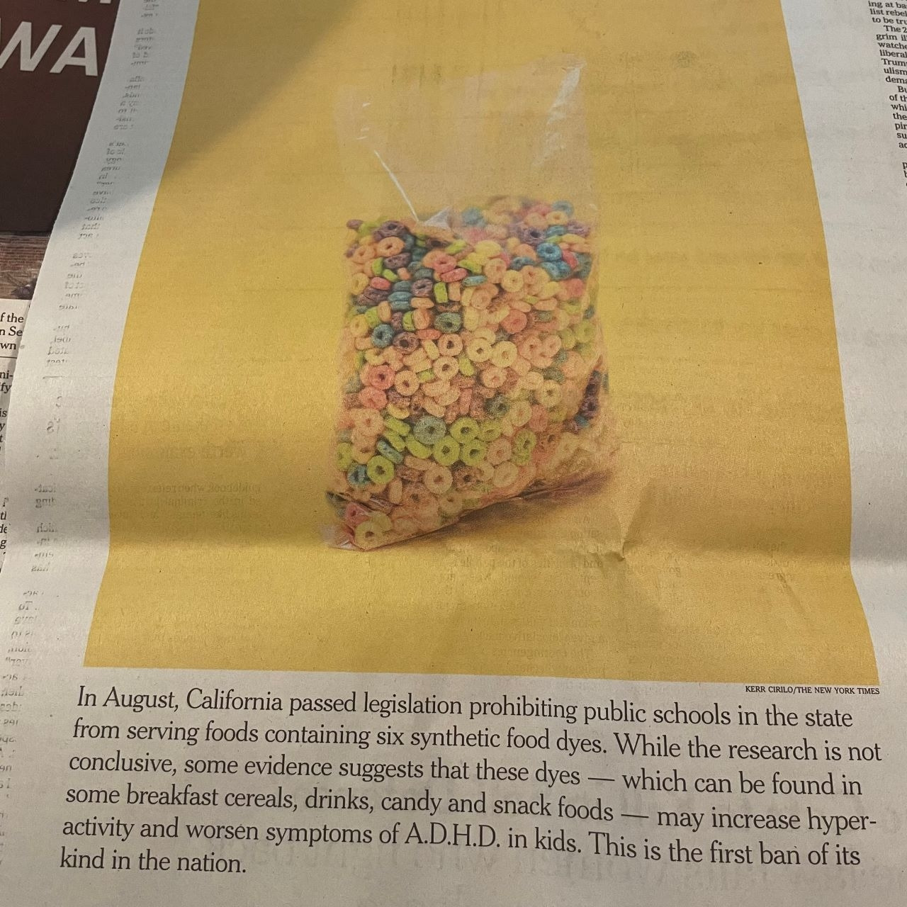 지난 8월, 미국 캘리포니아는 공립학교에서 인공 색소 첨가물이 포함된 음식을 제공하거나 판매하는 것을 금지하는 법안을 통과시켰다. 아침 식사용 시리얼, 음료, 사탕 등에 사용되는 합성 식용 색소가 아이들의 과잉 행동을 촉진하고 ADHD 증상을 악화시킬 수 있다는 연구 결과가 보고되면서, 아이들을 보호하기 위한 차원에서 발의된 법안이라 할 수 있다.