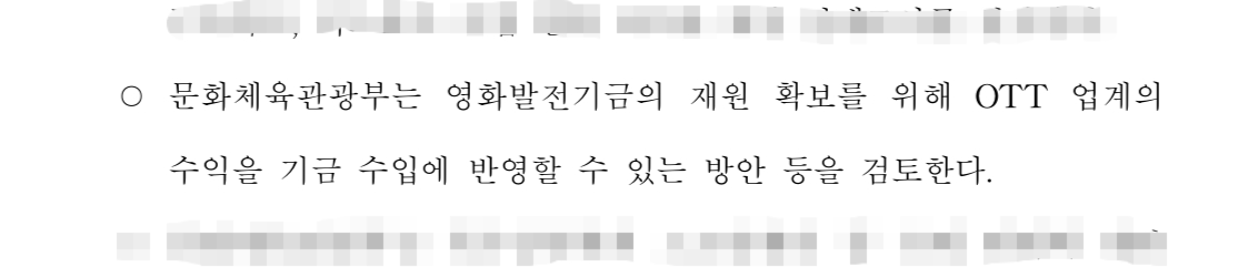 실제 국회 문화체육관광위원회는 2024년 예산안 예비심사보고서의 부대의견으로 "문화체육관광부는 영화발전기금의 재원 확보를 위해 OTT 업계의 수익을 기금 수입에 반영할 수 있는 방안 등을 검토한다."는 내용이 있었다.