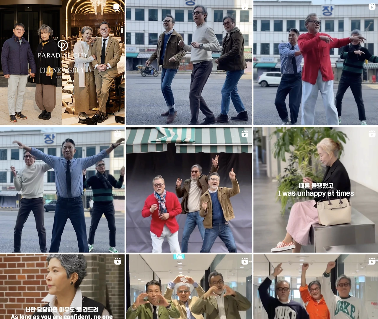 반면, 더뉴그레이는 건강하고 멋지게 나이 듦을 뜻하는 ‘웰 에이징(Well-aging)’ 관점에서 시니어를 바라보고자 했다. 기존의 편견을 뒤집은 더뉴그레이는 멋있는 시니어들의 사진을 소셜미디어에 공유하여, 시니어들이 주체적으로 인식하고 스스로가 주연이 될 수 있는 모습들을 적극적으로 노출시켰고, 시니어 패션을 넘어 인구 문제에 대한 인식까지 변화시키고 있다.