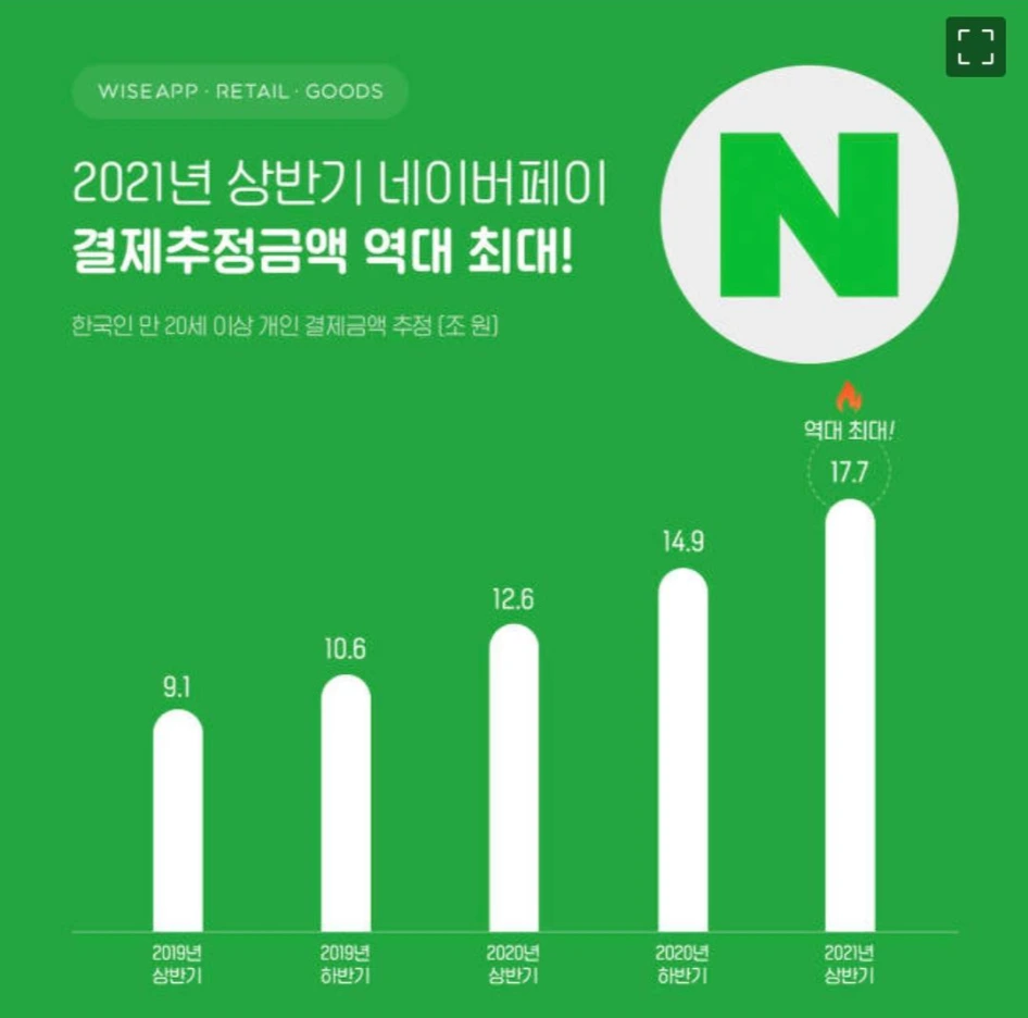 <출처: 와이즈 앱_2021년도 상반기 네이버페이 결제 추정금액>