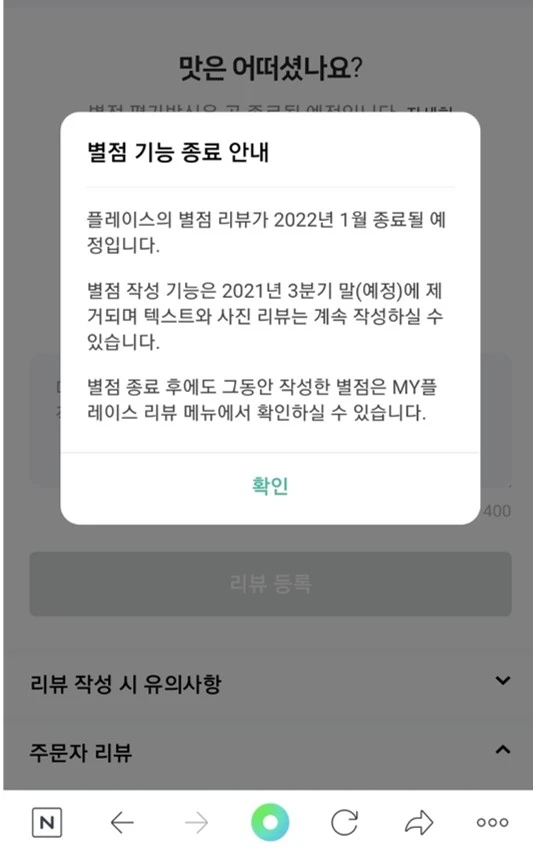 <2022년 1월 네이버 플레이스 별점 리뷰 종료 예정>