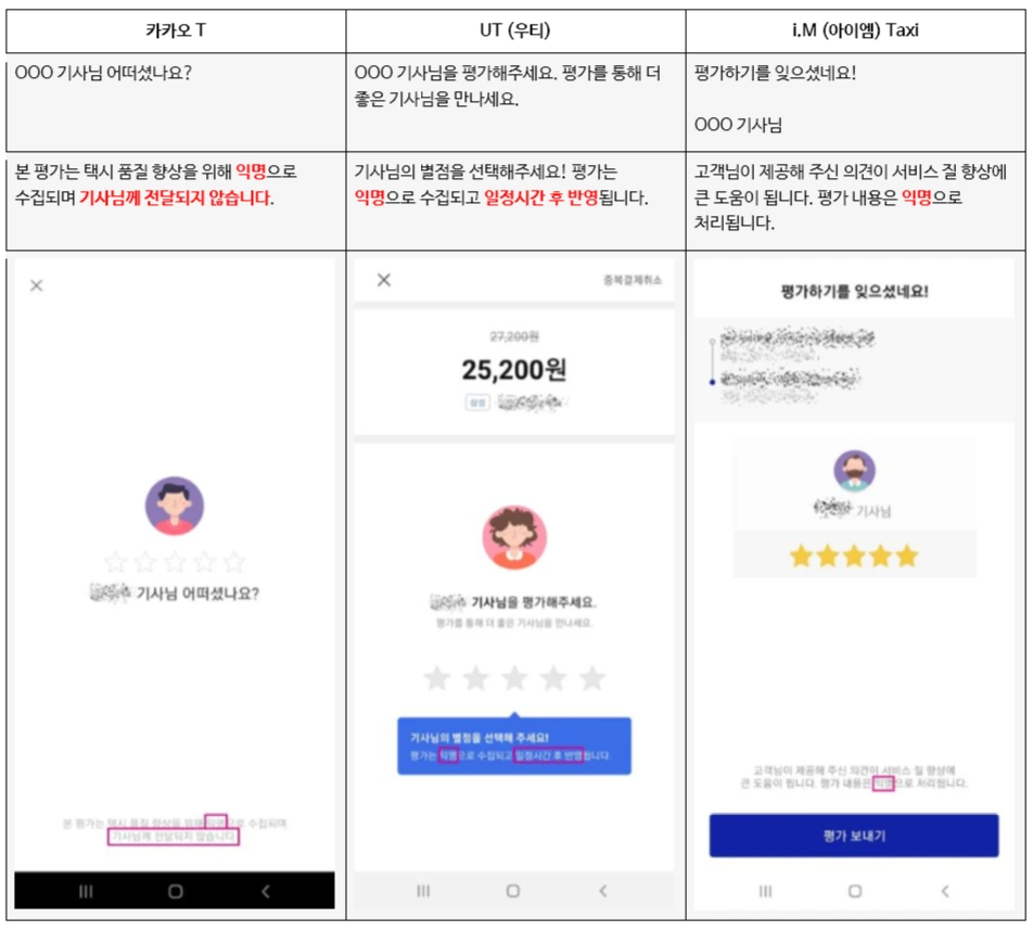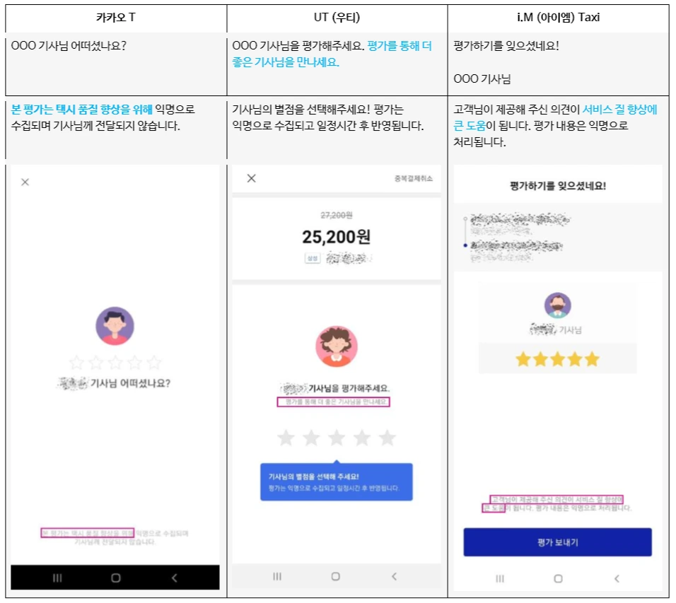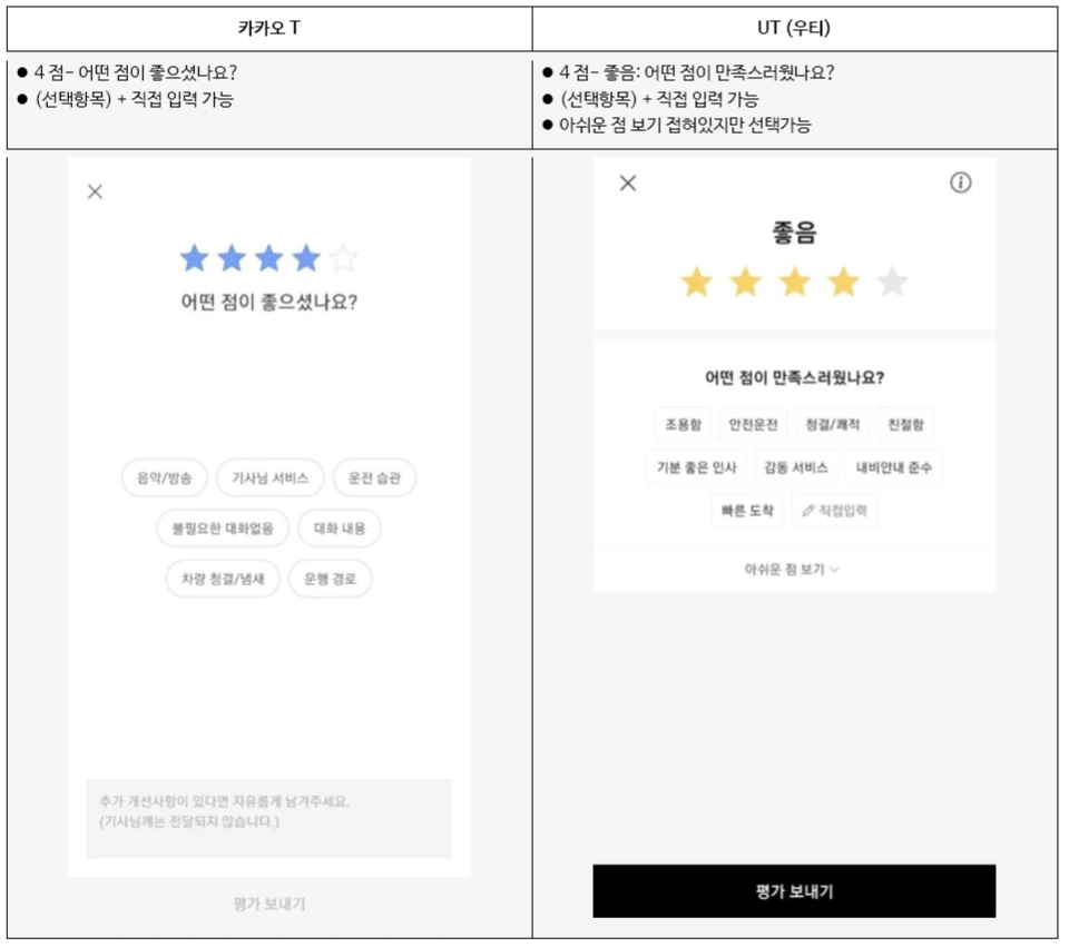 택시 플랫폼 UX 비교 분석: 기사 별점 시스템