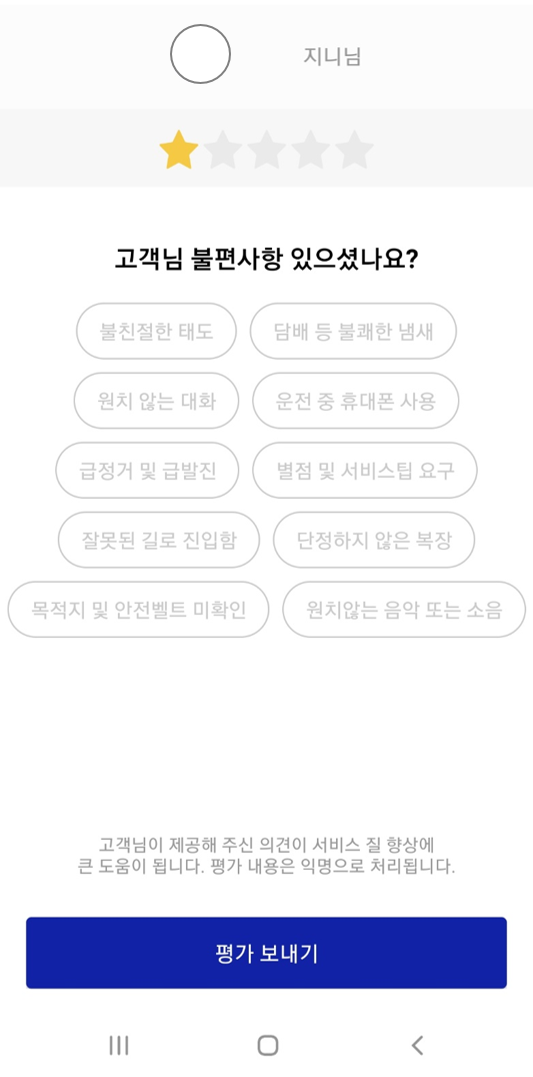 카카오T에서는 이러한 서비스 제공자의 니즈를 파악하여 기사도 승객을 평가할 수 있는 평가 시스템을 제공하고 있다. 물론 승객 화면 대비 기사가 승객을 평가하는 화면은 매우 간소화되어 있지만, 그래도 양측의 피드백을 모두 수렴하려는 해당 플랫폼사의 시도 자체는 매우 바람직해 보였다.