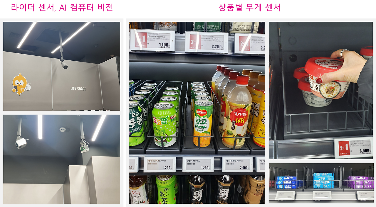 ③ 무게 센서: 매장에 진열된 상품들의 무게 및 변동되는 무게를 정확히 측정