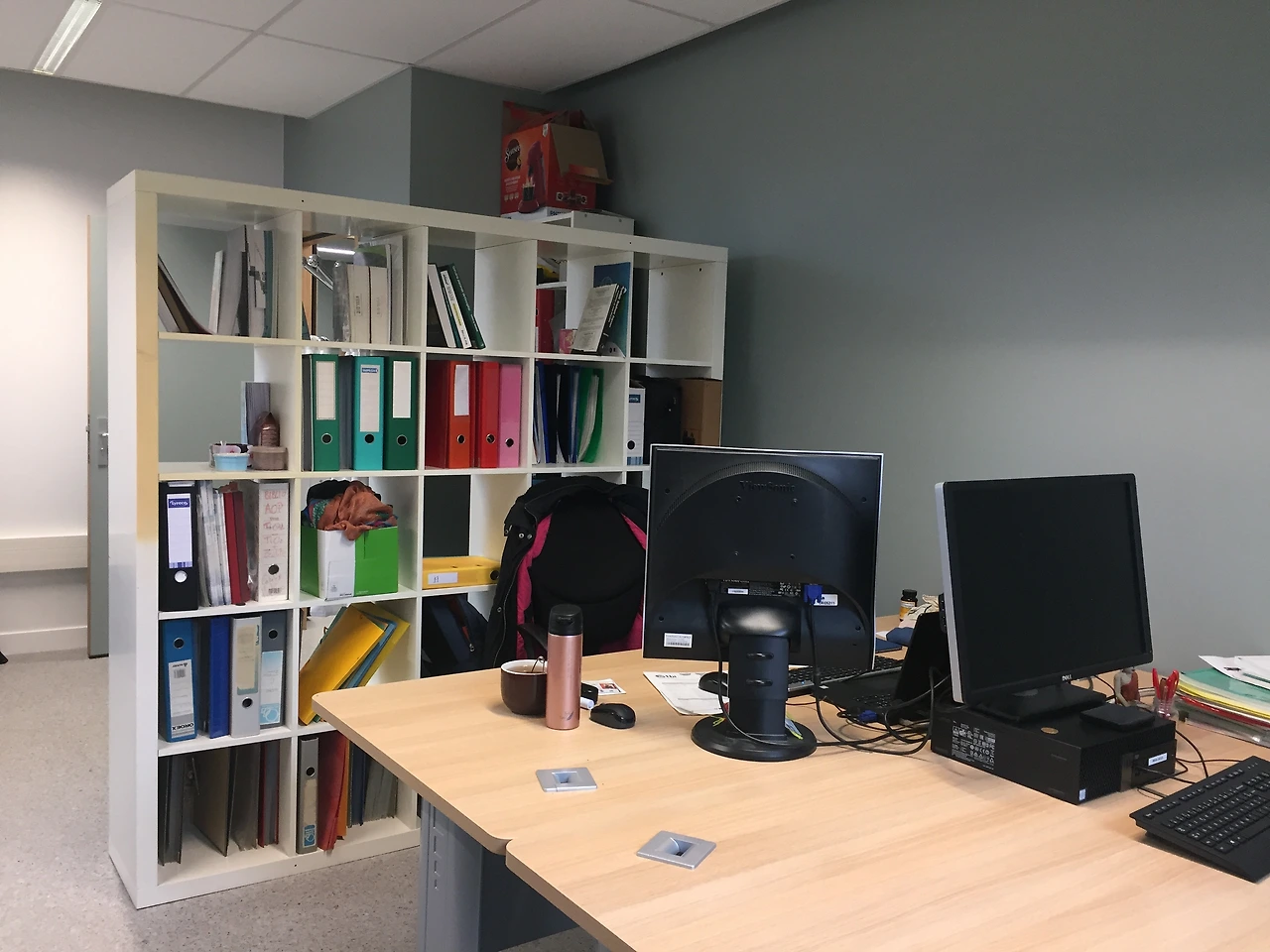연구소는 각 층마다 1-8명이 들어갈 수 있는 작은 방들이 많이 있다. 교수님이나 연구원들은 주로 두 명이서, 간혹 혼자서 방을 쓰고, 주로 박사과정생들인 학생들이나 박사 후 연구원(포닥)들은 4-8명이서 방을 쓰며, 4층의 행정 임직원들은 혼자서 방을 쓴다. 연구소에는 17개 팀이 있고 우리는 10번 팀인데 주제별로 팀을 나눈 거라 팀의 규모는 2명에서 수십 명까지 제각각이다. 우리 팀은 교수인 Professeur가 4명, Maître de conférences 4명, 연구자 Chercheure 1명, 테크니션과 엔지니어 및 행정업무 보는 분들이 4명 해서 총직원이 13명이며 이분들은 아마 거의 다 정규직인 듯하다.