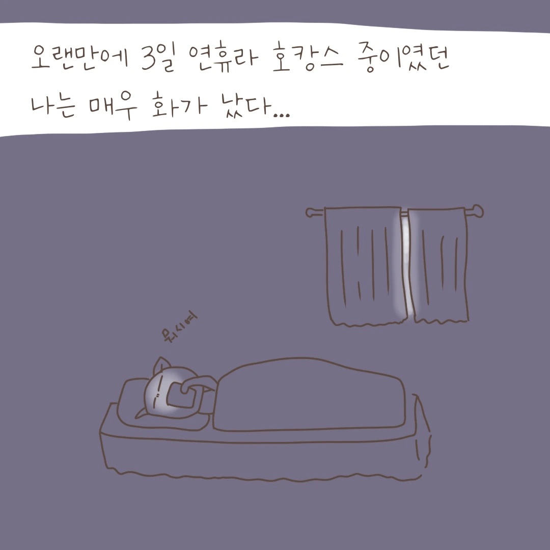 3일 연휴라고 통보한 것도 그 주 였다. 급하게 괜찮은 호텔을 예약하여 나갔다. 그런데..... 갑자기 회사번호로 문자가 왔다. 내일 갑자기 정상출근으로 바뀌었단다.