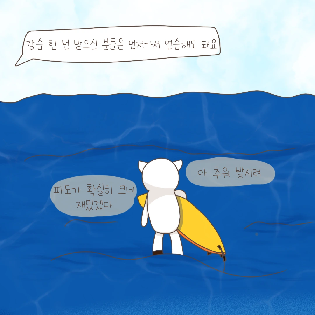 파도가 높았던 덕에 물맛도 많이보고 하얗게 부서지는 파도가 왜 위험한 지도 알고, 어떻게 피해야 하는 지도 알게 되고.... 유익.... 한 시간... 이였다고 자기 암시를 해보겠습니다.