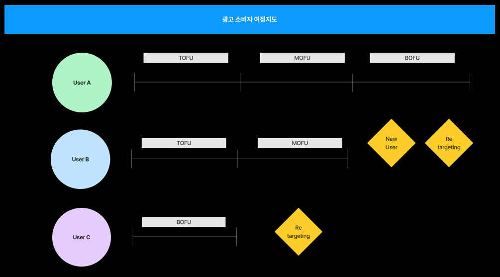 위의 이미지처럼, 결국 이러한 광고 소비자 여정지도 안에서도 User의 여정은 또 각각 다를 것 입니다.