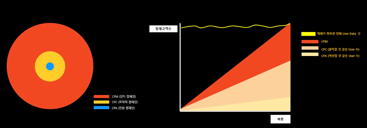특히 우리는 주로 현업에서 온라인 광고 매체를 다룰 때, 광고를 봤을 때라는 목표를 가진 CPM(Cost Per Mile)캠페인 보다는 CPC(Cost Per Click), CPA(Cost Per Action)이라는 캠페인을 운영하게 되는데요.