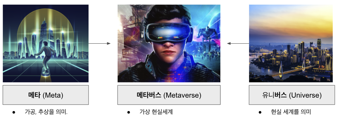 이러한 개념은 1992년에 닐 스티븐슨(Neal Stephenson)의 소설 《스노우 크래쉬》에서 나왔는데, 좀 더 쉽게 이해하자면 아래의 영상을 보면 좋다. 우리가 흔히 알고 있던, 혹은 봤었던 영화 '레디 플레이어 윈'이다.