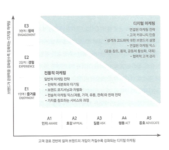 디지털 마케팅과 전통적 마케팅은 고객 옹호 획득이라는 궁극적인 목표를 갖고 필립코틀러가 제시한 마켓 4.0 내에서 공존하게 될 것이다 라는 것을 위의 표를 통해 확인해볼 수 있다.