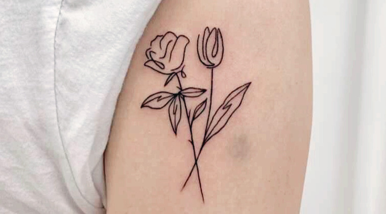 피어난 장미와, 튤립이다. 장미는 사랑과 열정을 의미하고, 튤립은 사랑의 고백, 배려를 의미한다.